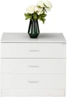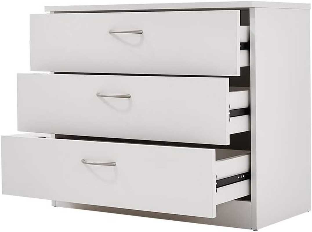 White dresser chest with 3 large drawers to store stuffs with more classification, such as clothes, socks, underwear or ties, to satisfy your bedroom storage needs. 3 Spacious Drawers: With these 3 drawers, you will never run out of space again! you can store a wide variety of items such as clothes, accessories, book and important documents, making organizing and finding The bedroom drawers chest appearance is unique and elegant, it matches any living room room. The 4-drawer chest can be used to store your keys, wallet, or notebook. This 3 drawer storage chest is made of sturdy MDF, and it is waterproof and easy to clean. Equipped with easy-to-grip silver metal handles, opening each drawer is smooth and easy Modern Simple Wooden Dresser: Simple but not monotonous in style, this chest of drawers has a modern wood grain and matte finish to complement your room or space in your home Features: 1. This drawer dresser is made of high quality material 2. Elegant, fine workmanship, beautiful and fashion 4. It is a perfect gift for someone special or treats for you 5. Simple design makes this drawer dresser a perfect decoration for your home 6. It is suitable for indoor use, likes family room, bedroom and living room Specifications: 1. Material: P2 Wood 2. Color: White 3. Dimensions: (25.98 x 13 x 22.05)" / (66 x 33 x 56)cm (L x W x H) 4. Weight: 37.48 lbs / 17 kg 5. Number of Drawers: 3 Pcs 6. Recommended Room: Family Room, Bedroom, Living Room 7. Recommended Location: Indoor Package Includes: 1 x Dresser
