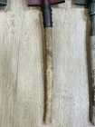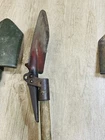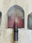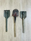 The three vintage entrenching tools shovels are in good solid usable condition, Both the green ones fold easily, but the red one does not it might be that the metal is just bent too tight to fold. The red one also has a curved wood handle. And I’m unsure if that one is US military.