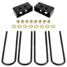 Front Spacers: After removing the wheel, remove any brake line and ABS line brackets, so you have enough slack in the lines. Use a wrench to remove the upper strut mount nuts and the upper ball joint nut. Strike the side of knuckle with a hammer to get the ball joint to separate. Using a wrench, remove the steering linkage nut. Remove the sway bar nut and bushing. Remove the two lower strut mount bolts and remove the strut from the vehicle. 3" Front & 2" Rear Leveling Lift Kit Fits Ford F150 2WD 4WD 2021 2022 2023 2024 Front Spacers: After removing the wheel, remove any brake line and ABS line brackets, so you have enough slack in the lines. Use a wrench to remove the upper strut mount nuts and the upper ball joint nut. Strike the side of knuckle with a hammer to get the ball joint to separate. Using a wrench, remove the steering linkage nut. Remove the sway bar nut and bushing. Remove the two lower strut mount bolts and remove the strut from the vehicle. Install the supplied bolts into the leveling kit spacer. These will act as the new studs when reinstalled. Bolt the spacer to the top of the strut using the supplied nuts. Rotate the strut 180 degrees and install it back into the truck. Re-insert the lower strut bolts. The lower mount bushing will rotate to correct the angle. Raise the lower control arm to raise the spindle while lowering the upper control arm to re-install the upper ball joint and Re-install the steering linkage. Complete the installation on the other side of the truck before reinstalling the sway bar nut and bushings. Rear Blocks: Support the rear axle with a jack and jack stands. Remove the brake and parking brake cables so there is slack in the lines. Remove the lower rear shock mount nut and bolt. Remove the factory rear U-bolts and discard them. Lower the axle to remove the factory block, or you can put new blocks on the factory block, get a new lift. Install the new rear block making sure the smaller side of the spacer is facing the front of the truck. Install the new supplied U-bolts and torque to factory spec. Complete the installation on the other side of the truck before reinstalling any brake or ABS lines. After 100 miles recheck torque to factory spec. Item Specifics Brand gdcarpartsin Manufacturer Part Number GD84703101car Lift Height 3" Front & 2" Rear Actual Spacer Thickness appr. 1.97"/ 50mm Note Lifting height is not exactly equal to spacer thickness Blocks Specs 5.12" Long x 2.48" Wide Included Hardware All Parts in pictures included Part Type Suspension Lift Kit Fitment Type Performance/Custom Placement on Vehicle Left Right Front Rear Warranty 1 Year Material Aluminum Steel Kit or Single Part Kit Kit Parts Included Strut Spacers Lift Blocks U-Bolts Instruction No Included Fitment For Ford F150 Drive Type 4x4 4WD / 4x2 2WD Color Black Interchange Part Number for 2021-2024 Ford F-150 2WD 4WD U Bolt Specs Square 12.8" Long / 3.15" Wide / 5.9" Threads / 9/16"-18 Quantity 2X Strut Spacers 2X Rear Blocks 4X U-bolts Shipping 1. Orders processed within 24 hours of payment verification.(if you want cancel orders or change address pls contact us within 6 hours after payment,or we are not responsible for shipping a replacement.) 2. We only ship to confirmed PAYPAL addresses. Your PAYPAL address must match your Shipping address. 3. Fast shipping:All our packages use USPS First Class/UPS/Fedex... Package Service 4. If you have not received your shipment within 15 days from payment , please contact! Return 1. You have 30 days to contact us and 10 days to return it from the date it was received. If this item is in your possession more than 7 days, it is considered used and we will not issue you a refund or replacement. There are NO EXCEPTIONS! 2. All returned items must be in the original packaging and you must provide us with the shipping tracking number, specific reason for the return, and item custom lable. 3. We will refund your full winning bid amount, upon receipt of the item in its original condition and packaging with all components and accessories included, AFTER both Buyer and Seller cancel the transaction from eBay. OR, you may choose to have a replacement. 4. Return shipping is to be paid by the Buyer Feedback We strive for 100% customer satisfaction! FEEDBACK IS VERY IMPORTANT TO US. We request that you contact us immediately BEFORE you give us neutral or negative feedback, so that we can satisfactorily address your concerns. Payment 1.We only accept PayPal. 2.Please do not use the PayPal note field to indicate us to ship to other address. The note there will NOT be read. If you want to change the shipping address, please contact us by eBay messages. 3.(if you want cancel orders or change address pls contact us within 6 hours after payment,or we are not responsible for shipping a replacement.) 4.Payment must be received within 10 days as auction ended or order might be delayed. Warranty 1,We stand behind every product we sell. 2,All of our brand new items come with a 60-Days money-back guarantee. 3,We define the item as defective only if it doesn't function as described. 4,It is the buyer's responsibility to understand the item description before bidding. 5,We will replace the defective items, provided that they are in stock within the warranty period posted with the listing and the buyer return the original item and pay for the S&H cost for the replacement. 6,We will refund the purchase price if the replacement is not available or buyer prefers a refund and send the original item back at his/her own cost. 7,Shipping & handling cost are not refundable. 8,Man-made damage by abuse or wrong operation is not covered by this warranty. 9,No product liability insurance is assumed. Shop Category Store Home Mirror Parts ◈ Vehicle Mirrors ◈ Truck Mirrors ◈ Mirror Glasses & Other Parts Brake Parts ◈ Brake Rotors ◈ Brake Pads ◈ Brake Rotors + Pads Mass Air Flow Sensors Oxygen Sensors Cooling Parts ◈ Radiators ◈ Radiator Hoses ◈ Cooling Fans ◈ 