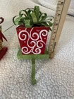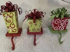 3 Green And Red Metal & Glitter Christmas Present Box/Ribbon-Stocking Holder
