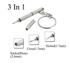 3 In 1 Mini Keychain Screwdriver Eyeglasses Computer Watch Phone Repair Tool NEW DESCRIPTION Features: Three small screwdriver Rotary head type: Slotted, for Phillips, Hex Applicable screw diameter: .7mm, 2.6(mm) Specifications: three small screwdriver Slotted: .7mm for Phillips: .7mm Hexagon socket: 2.6mm Blade length: 60mm(blade) Blade outer diameter: 50mm Package Contents: * Mini Screwdriver POLICES Shipping Payment WARRANTY We only ship to confirmed ebay Order addresses. Please comfirm that your Order address is in line with your shipping address. Please kindly note that the c ombined shipping is not provided because the shipping fee is calculated by weight. Also, the each additional item means exactly the the same color and size. It takes about 7 -15 working days to US; about 10-30 working days to other countries. Transit time may be a little delayed because of the bad weather and customs inspection . If you do not receive your item within 30 working days since payment finished, please contact us immediately for further assistance. Payment must be completed within 5 days. If you have any problems about payment, please contact us via ebay message. We strive for 100% customer satisfaction! Positive Feedback is very important to us. If you have any questions, p lease feel free to contact us via "Ask seller a question" . We will reply your email within 24 working hours.