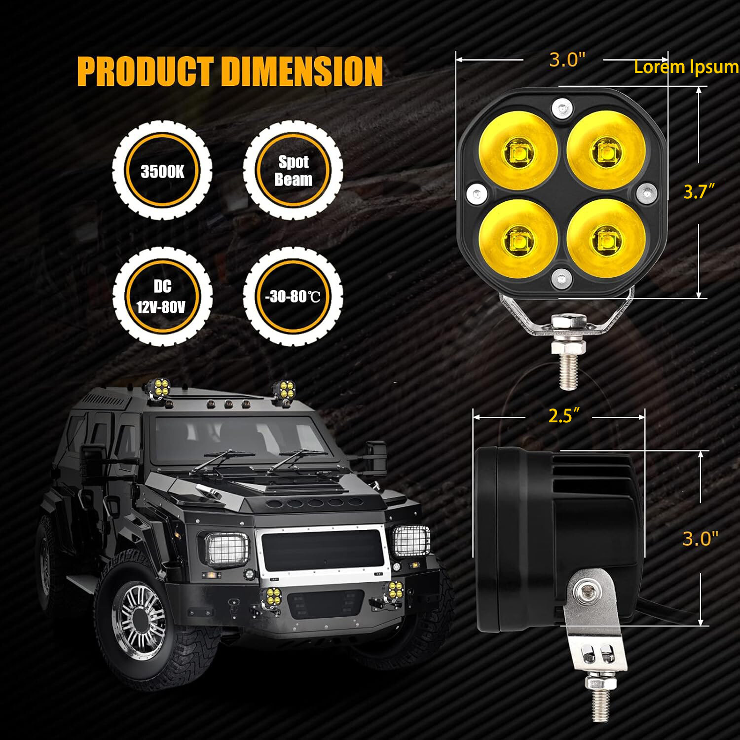 These lights are absolute beasts! The yellow glow cuts through fog and dust perfectly, and the build quality feels solid. Installation was a breeze with the adjustable brackets. Super bright for off-road adventures.