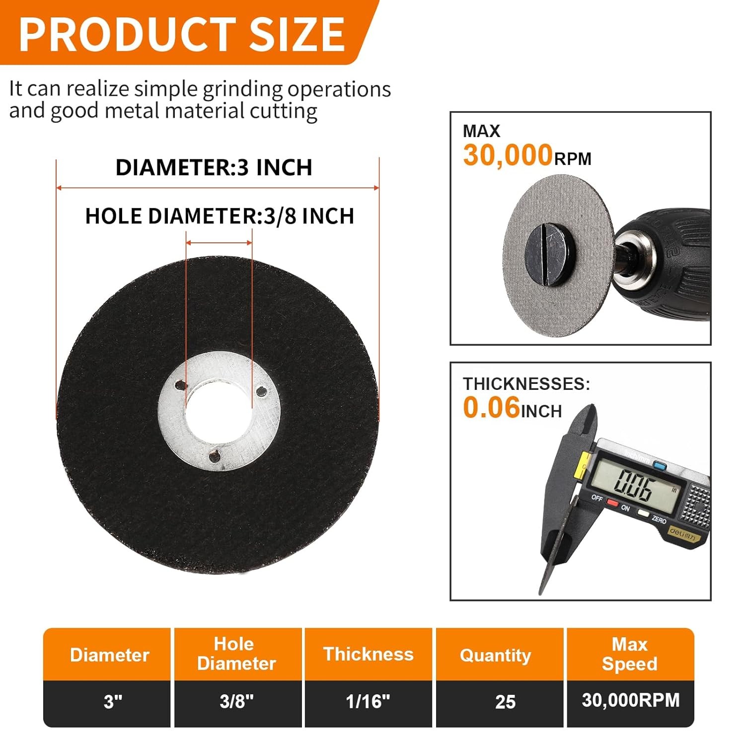 3 Inch Die Grinder Cut-Off Wheel,25 Pack 3” Metal Cutting Discs 3/8in Arbor Hole,Steel Carbon PVC Cutter with 1/4in Shank Mounting Mandrel Holder Accessories for Air Grinders Drill Rotary Tool Description: Features: Specifications: 25 Pcs 3 inch type T14 cut off wheel; hole diameter: 3/8 inch; Thickness: 1/16 inch (Max speed 30000RPM,speed 80M/s) ;3/8"and 1/4"mounting mandrel with 1/4in shankx 1 Quality materials:Firmoath 2" Cutting Disc is made of aluminum oxide and silicon carbide material with high hardness and sharpness; double-layer fiber mesh and high-strength resin bond increases durability by 45%, stainless steel centre ring reinforced disc to prevent breakage Mandrel: The set comes with both 3/8" and 1/4"threads, chuck type mandrel construction for all types of sanding disc, flexible and adaptable, easy to install and remove, compatible with die grinder cutting tools, drills and angle grinders Widely Used: Die grinder cutting discs are very aggressive and can make fast burr-free cuts on metals, steel, carbon steel, stainless steel, iron, copper and other metals and plastics, PVC, which are suitable for different fields such as construction industry, foundries, steel structure factories and electronic and electrical appliances manufacturing Note: Make sure the grinding cutting wheel is compatible with the angle grinder and is firmly installed, and wear good protective equipment to avoid injuries during the cutting process SHIPPING: We are always working hard to ensure your package arrives as soon as possible. Please understand that some factors like weather, high postal traffic, and the performance of shipping companies are outside of our control. We offer free shipping to the lower 48 states and ship within 3 business days of payment, usually sooner. We do not accept P.O. Boxes. Please provide a physical address. For shipping outside of the continental USA, we only use eBay's Global Shipping Program. The item is shipped to KY and then sent to the rest of the world. International customers are responsible for all duties and taxes. Continue to check out in order to calculate costs for shipping the item to your country. Messages regarding eBay's Global Shipping Program MUST be directed at eBay EXCLUSIVELY. PAYMENT: We accept payment by PayPal only (Can accept all kind of credit cards). Please pay as soon as possible after winning an auction, as that will allow us to post your item to you sooner. Payment must be received within 3 business days of auction closing. Before buying, please make sure your PayPal and eBay address is correct. If not, please correct it before payment. We have confidence in our products, but if you are not fully satisfied please contact us within 30 days of purchase and you will get full refund of your money. Return the product in the same condition you received it. Please note - return shipping will be paid by the buyer.