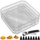 Parts List: 3× Air Fryer Rack 1× Anti-Scald Clip 8× Silicone Feet Product Specification: Description: This air fryer accessories set contains 3× Air Fryer Rack, 1× Anti-Scald Clip and 8× Silicone Feet. The 3 layer air fryer rack is stackable and removable that is convenient to for daily cooking use. Key Feature Dishwasher Safe: The air fryer racks are dishwasher safe that is convenient to wash the racks and efforts saving. With Anti-Scald Clip: This package comes with an anti-scald clip, convenient to use and effectively avoid burning hands. Specification Name: Air Fryer Rack Material: Stainless steel Size: 20×20×4cm/8×8×1.5in Note: 1. There may be slight differences between the picture and the actual color of the commodity. We will try our best to show you the exact color 2. Please allow slight dimension difference due to manual measurement. (*^_^*) [Wide Compatibility] This air fryer racks feature square and has a side length about 8 in, the height is about 4.5in. The layer spacing is about 1.5 inches (after using the silicone heighten feet). Suitable for 5L-7.5L air fryers. And it is oven and microwave safe. Please measures your air fryer before ordering. (*^_^*) [3 Layer Stackable] The 3 air fryer racks are available stackable and separate use. And the heightened feet can be used for raising the rack. Each layer is about 0.5in higher than the old model, allowing for larger food items. (*^_^*) [Premium Stainless Steel] This air fryer racks are made of quality food grade 304 stainless steel that safe, rust-proof, heat resistant and durable. Reliable and suitable for long time use. (*^_^*) [Air Fryer Accessories Set] This package contains 3× Air Fryer Rack, 1× Anti-Scald Clip and 8× Silicone Feet. With the 8 silicone feet increases the space between layers that is more convenient and hassle saving for making popcorn, French fries, cookies, grilled meat, roasted potatoes, dehydrated fruits, and more. (*^_^*) [Effortless to Clean] This air fryer rack is designed for everyday use. With a polished finish that gives a great feel. Smooth surface and it is effortless to clean. You put in the dishwasher, convenient and effortless.