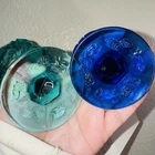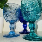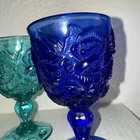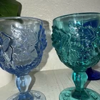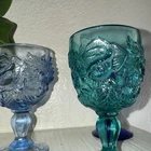 Set of 3 glass goblet style cups Beautiful drink wear Would even look mazing as décor or trinket holders Please view all photos to ensure satisfaction