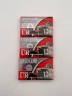 This listing is for a set of three Maxell UR 120 minutes blank cassette tapes. The tapes are ideal for recording your favorite music, movies, or any other audio content. The cassettes come in a standard jewel case and have a capacity of 120 MB, which is more than enough to store your precious memories. The Maxell UR 120 model is known for its long-run storage and recordable features, making it a perfect choice for anyone who wants to preserve their audio collection. Whether you're a music enthusiast or a professional videographer, these cassettes are an excellent addition to your equipment. Get your hands on these blank tapes today and start recording your memories!