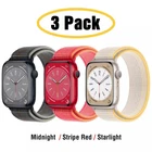 3 PACK Nylon Sport Loop Band for Apple Watch 10 9 8 7 6 5 SE 40/44/41/45/42/46mm Features: ● 100% brand new and high quality. ● Fashionable and sport in one.If want to go to a party or Friday nightout or grinding at the gym for an active lifestyle,just show your apple watch off. Mix and match it with any outfit or lift those weights with style. ● Made from high quality nylon material.It's durable,fashionable and breathes wonderfully. ● The double-layer Nylon weave has dense loops on the skin side that provide soft cushioning while allowing moisture to Escape. ● On the reverse side, the stretchable fastener strips are hot-formed to the band for superior durability. ● Like all Apple watch bands, you can match this band with any Apple watch case of the same size. ● Fit for wirst size: > 40/41/42mm Size: Suitable for 5.12"-7.28"(133mm-190mm) wrist > 44/45/46/49mm Size: Suitable for 5.7"-8.66"(145mm-220mm) wrist Compatible With: > For Apple Watch Ultra / Ultra 2 > For Apple Watch Series 10 / Series 9 / Series 8 / Series 7 / Series 6 / Series 5 / Series 4 / Series 3 / Series 2 / Series 1 / > For Apple Watch Nike > For Apple Watch Hermes > For Apple Watch SE Package Includes: 1x 3 PACK Nylon Sport Loop Band !!! ( PS: The Apple Watch is Not Included )