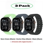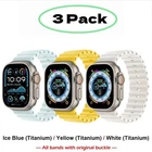 3 PACK Ocean Band Strap for Apple Watch 11 10 9 8 7 6 SE 44/45/46/49mm Ultra 3 2 Features: 【Premium Material】The rugged Ocean Band is molded in a high performance silicone with a tubular geometry allowing it to stretch for a perfect fit, Even suitable for extreme weather mountaineering and deep-sea diving. 【Security & Easy to install】Durable Ocean Silicone wristbands comes with watch lugs on both ends, which locks onto watch interface precisely and securely. It can effectively prevent your apple watch from falling off and becoming loose. The upgraded linker on both ends locks precisely and securely on. Don't need any tools, easy and direct installation and one button removal. 【For All Scenes】Suitable for many scenes, especially suitable for sports such as hike, run, outdoor Activities. Making the ultimate sports watch for athletes of all kinds required a unique approach. That's why specialized bands for outdoor adventures, endurance training, and water sports are as meticulously crafted as the watch itself. 【For Wrist Size】Suitable for 5.51"-8.26"(140mm-210mm) wrists. Compatible With: > For Apple Watch Ultra / Ultra 2 / Ultra 3 > For Apple Watch Series 11 / Series 10 / Series 9 / Series 8 / Series 7 / Series 6 / Series 5 / Series 4 / Series 3 / Series 2 / Series 1 / > For Apple Watch Nike > For Apple Watch Hermes > For Apple Watch SE 3 / SE 2 / SE Package Includes: 1x 3 PACK Ocean Band ONLY!!! ( PS: The Apple Watch is Not Included ) Note: You can select the colors, please add a note on your order or send us message for what colors you want, for example: Black x1, Orange x1, Yellow x1 . Then we'll send the colors as you requested.