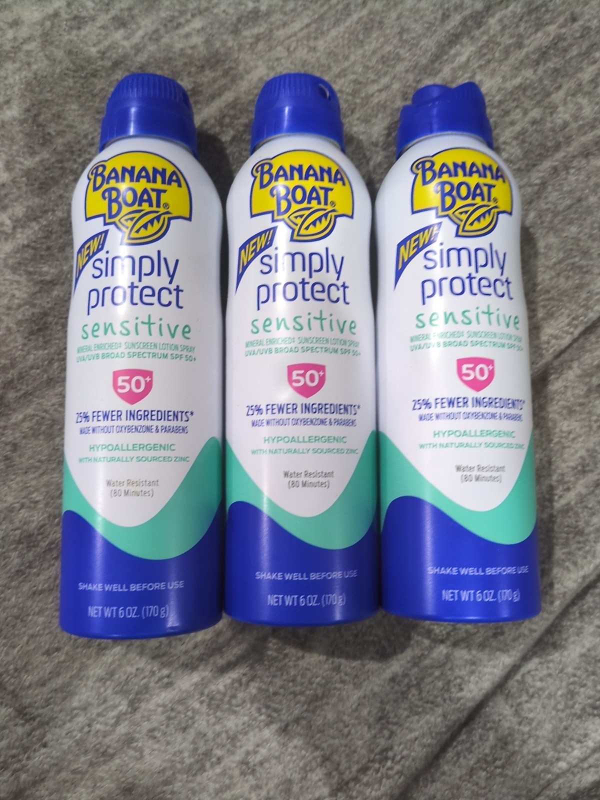 3 Banana Boat Sensitive Mineral Enriched SPF50 Hypoallergenic Sunscreen Spray.