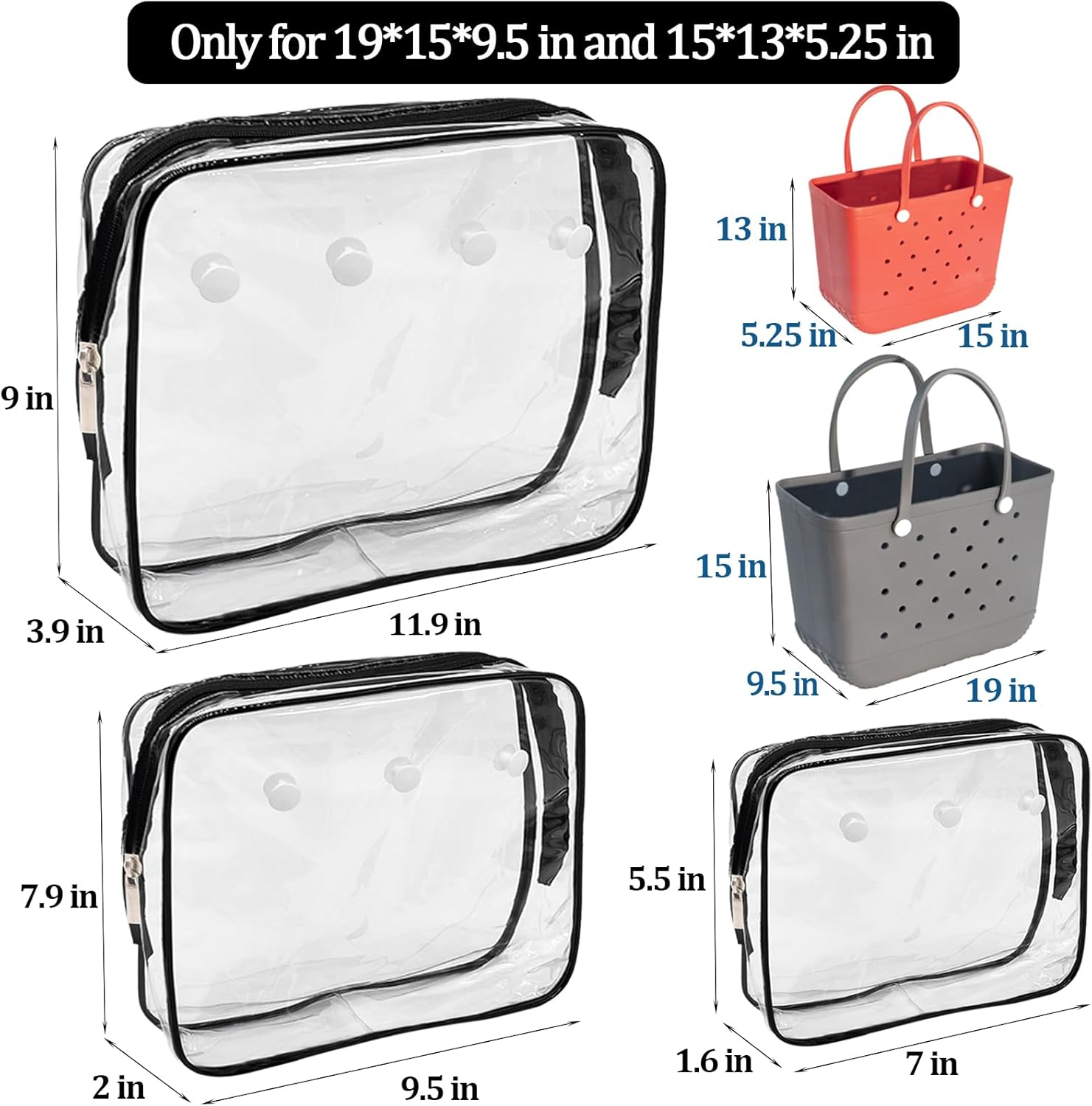 Store New Arrivals Add to Favorite View Feedback Contact 3 Packs Clear Bogg Beach Tote Bag Accessories, Hole Insert Bag Organizer Storage Description Item model number 3 Closure Type Zipper Style CLEAR Number of Items 3 Part Number 3 Color Black Brand BOUNHOHE Material Plastic Country of Origin China Batteries Required? No Number of Sets 3 Item Weight 6.3 ounces Shape Rectangular Batteries Included? No Recommended Uses For Product Beach accessories, Travel, Personal toiletries Special Features Waterproof Special Feature Waterproof Product Dimensions 12.5"L x 8.5"W x 0.66"H 【Transparent & Zipper Design】This set of 3 clear bogg bag insert with zipper contains a large, medium and small sizes, the transparent design allows you to easily find the items and location of storage, providing ample space for your needs. 【Portable and Reusable】Our travel pouch is lightweight, easy to clean and reusable, it has enough space to store your belongings, perfect for travel, vacation and beach, a great choice for storing personal toiletries, such as: sunglasses, towels , Toothpaste, Toothbrush, Cosmetics. 【HIigh Quality Material】The transparent makeup bag is made of Polyvinyl Chloride (pvc) waterproof and durable material, and has a unique button design, you can use it to match your rubber beach bag, it is waterproof and sandproof to protect your valuables such as mobile wallet, and also can increase the capacity of the beach bag. 【Perfect Gift】Transparent bogg bag pouch can be practical especially in situation where you need to quickily find specfic item, which enables you to see the content of your bag at a glance. This is the perfect gift for friends and family. 【Quality Services】Your satisfaction is our top goal.We are focus on the after sale service for a long time. If you are not completely satisfied for bogg bag insert pouch, please do not hesitate to contact us via the "Contact Seller" entrance on Amazon. 3 Packs ABOUT US We offer the best prices around on high quality products. Our E-store includes media such as books, movies, music and games while offering electronics, toys, sporting apparel, clothing, tools, general home, garden items and more. SHIPPING We are always working hard to ensure your package arrives as soon as possible. Please understand that some factors like weather, high postal traffic, and the performance of shipping companies are outside of our control. We offer free shipping to the lower 48 states and ship within 2 business days of payment, usually sooner. We do not accept P.O. Boxes. Please provide a physical address. RETURNS We offer a 30-Day Return Policy on items which you are not completely satisfied with. You have the option for a full-refund or an exchange of the item. No returns are available on items shipped outside of the USA. PAYMENT We accept PayPal. CONTACT US This page content is yet to come Please ad us to your favorite seller and visit again later Thank You CUSTOMER SATISFACTION We try our very best to make sure every customer is completely satisfied. If there's a problem, message us! We're happy to help.