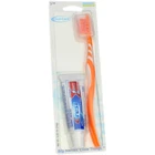 Product Description On the go with Oral Care Toothbrush and Crest Toothpaste Ideal for traveling Travel cap included Polished end-rounded bristles made from dentist"s proffered DuPont Tynex nylon for safe & effective Anti-slipping soft rubber area for excellent control and effective brushing Product Description On the go with Oral Care Toothbrush and Crest Toothpaste Ideal for traveling Travel cap included Polished end-rounded bristles made from dentist"s proffered DuPont Tynex nylon for safe & effective Anti-slipping soft rubber area for excellent control and effective brushing Disclaimer The product descriptions and instructions provided by vitabox.com are for informational purposes only and are qualified in their entirety by the information available from manufacturers of the products. You should carefully read all product packaging, and contact the manufacturer with any questions before using a product. While we endeavor to ensure that product descriptions are current, manufacturers sometimes change their products. We are not liable for inaccuracies or misstatements about products. We do not provide medical advice or recommendations. You should not use the information provided by vitabox.com for diagnosing or treating a health problem or disease. If you have or suspect that you have a medical problem, immediately contact your health care provider. Information and statements regarding dietary supplements have not been evaluated by the Food and Drug Administration or any other government agency and are not intended to diagnose, treat, cure, or prevent any disease.