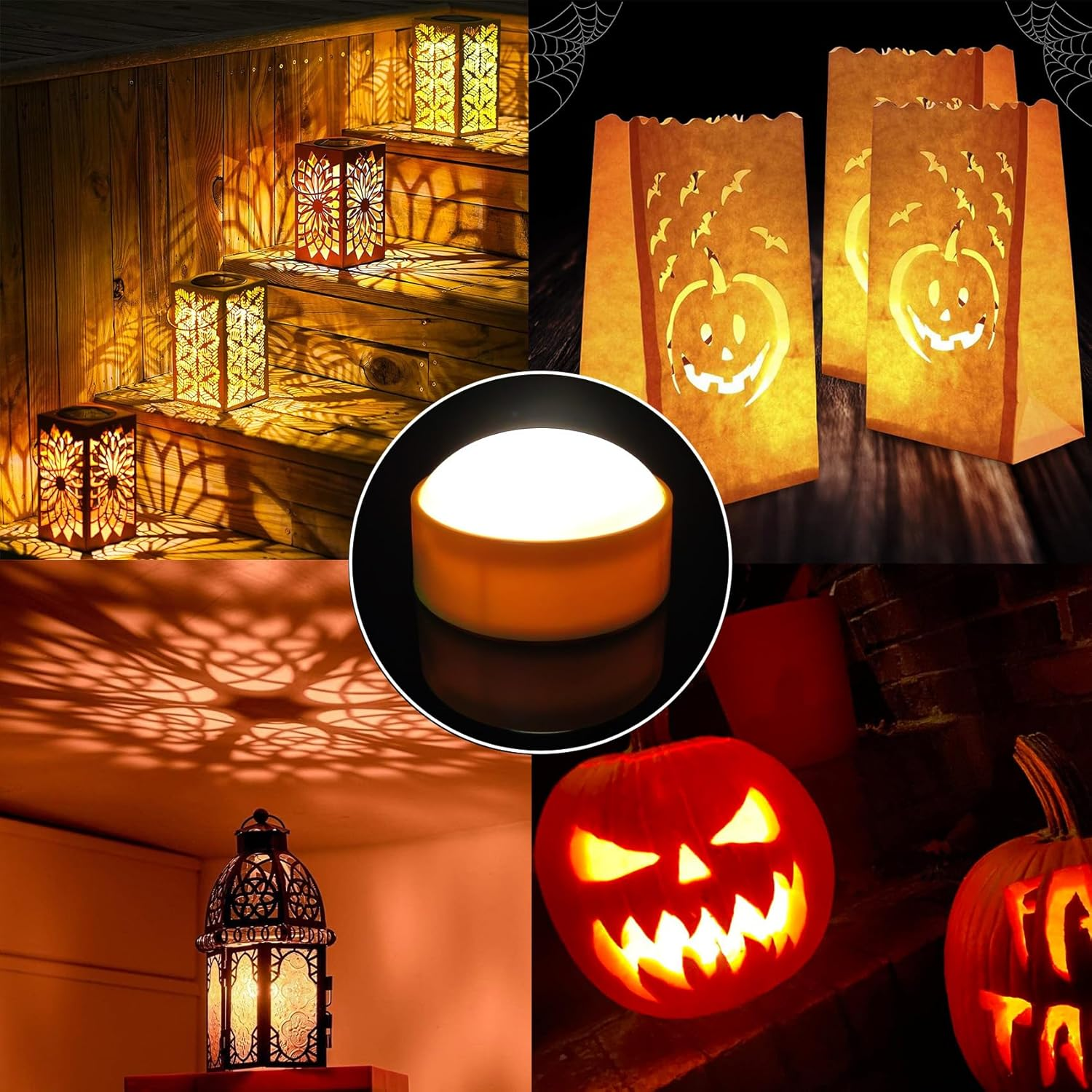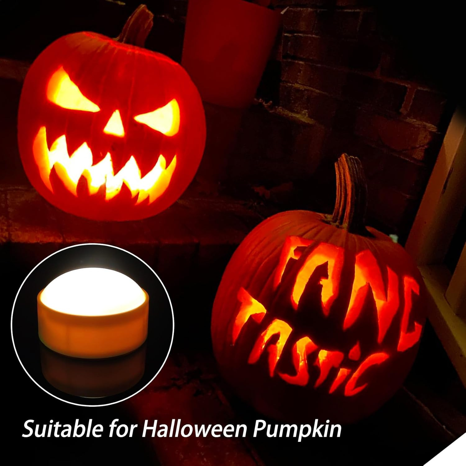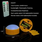 Halloween Decorative Candles: Led candles are great decoration for Halloween Jack O Lantern pumpkins, dinning room, bedroom, resturant, garden. Put candles into a real pumpkin or a fake pumpkin and light them up. Flickering lights will create a eerie atmosphere in pumpkins. Package: 3 Pack Orange LED flameless candles with remote. Size-(W 2.6'' x H 1.5''). Each LED battery operated candle requires 2 AA batteries(Not Included), which is efficient ,long-lasting and easy to be replaced. Timing Function with Remote: It is convenient to operate these battery operated candle lights with a remote control. You can turn on and off the Jack-O-Lantern lights, set the timer and choose the light mode (flickering or steady) from a distance up to 20 ft. Easy to Use: You can use these flameless led lights to decorate your home, kitchen, bedroom, bathroom, patio, yard, garden and pathway. It is also perfect for other holiday season, such as Thanksgiving, Christmas, New Year. Absolutely Safe and Harmless: These small candles are made of plastic. Don't worry about flames, there is no fire hazard, the family with children, the elderly and pets can use it with confidence. Set: 3 Pack Led Pumpkin Lights + 1 Remote Control Material: Plastic Appearance Colour: Orange 10-key Remote Control:2H/4H/6H/8H Automatic Cycle Timers These LED pumpkin lights are perfect for your Halloween decorations. Each LED pumpkin lantern light is powered by 2AAA batteries. No mess, no smoke, no need to worry about causing fire. Tips:If you do not ue the product for a long time, please remove the battery.