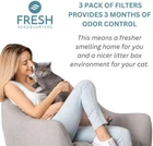 3 Pack Carbon Filters Compatible with Litter-Robot 3 – Activated Charcoal Cat Litter Box Filters Absorb & Neutralize Odor & Dust Control Keep your home fresh and clean - Say goodbye to unpleasant litter box odors with our 3 Pack Filters for Litter-Robot 3. Made with all-natural activated charcoal, these filters effectively trap and neutralize gaseous pollutants and odors for a fresher-smelling home. Lasts up to a - Tired of constantly changing out litter box filters? Our 3-pack is designed to provide odor control for a full before needing . At " x 10", they fit perfectly in your Litter-Robot 3 for hassle-free maintenance. Highly absorbent activated carbon pads - Made in the USA with millions of micropores, our carbon filters are highly effective at trapping and neutralizing odors, making them ideal for pet owners who want a fresh-smelling home without any harmful chemicals. Easy installation - No measuring or trimming required! Simply remove the old filter and replace it with a new one for uninterrupted odor control. Our filters take just seconds to install, leaving you more time to cuddle with your furry friend. Eco-friendly and safe - Rest easy knowing our activated carbon filters are made with natural ingredients like coconut shells, peat, wood, and sawdust. Non-toxic and safe for both pets and people, they provide effective odor control without harmful chemicals.