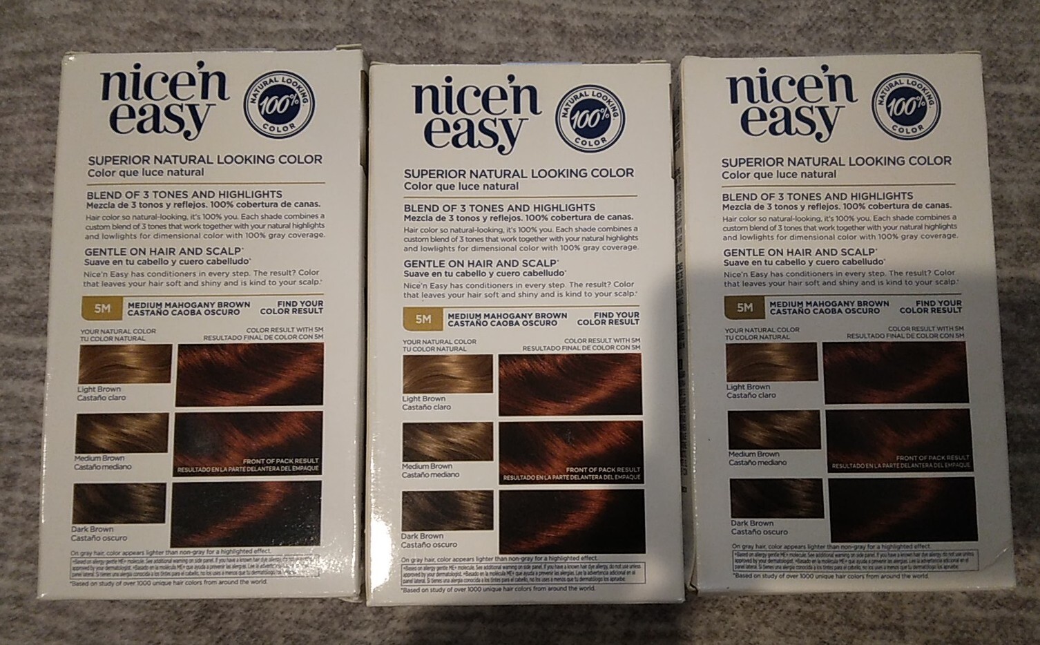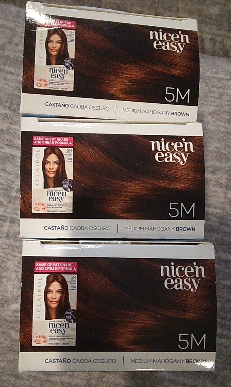 3 Packs CLAIROL Nice 'n Easy 5M MEDIUM MAHOGANY BROWN Permanent Hair Dye Color.