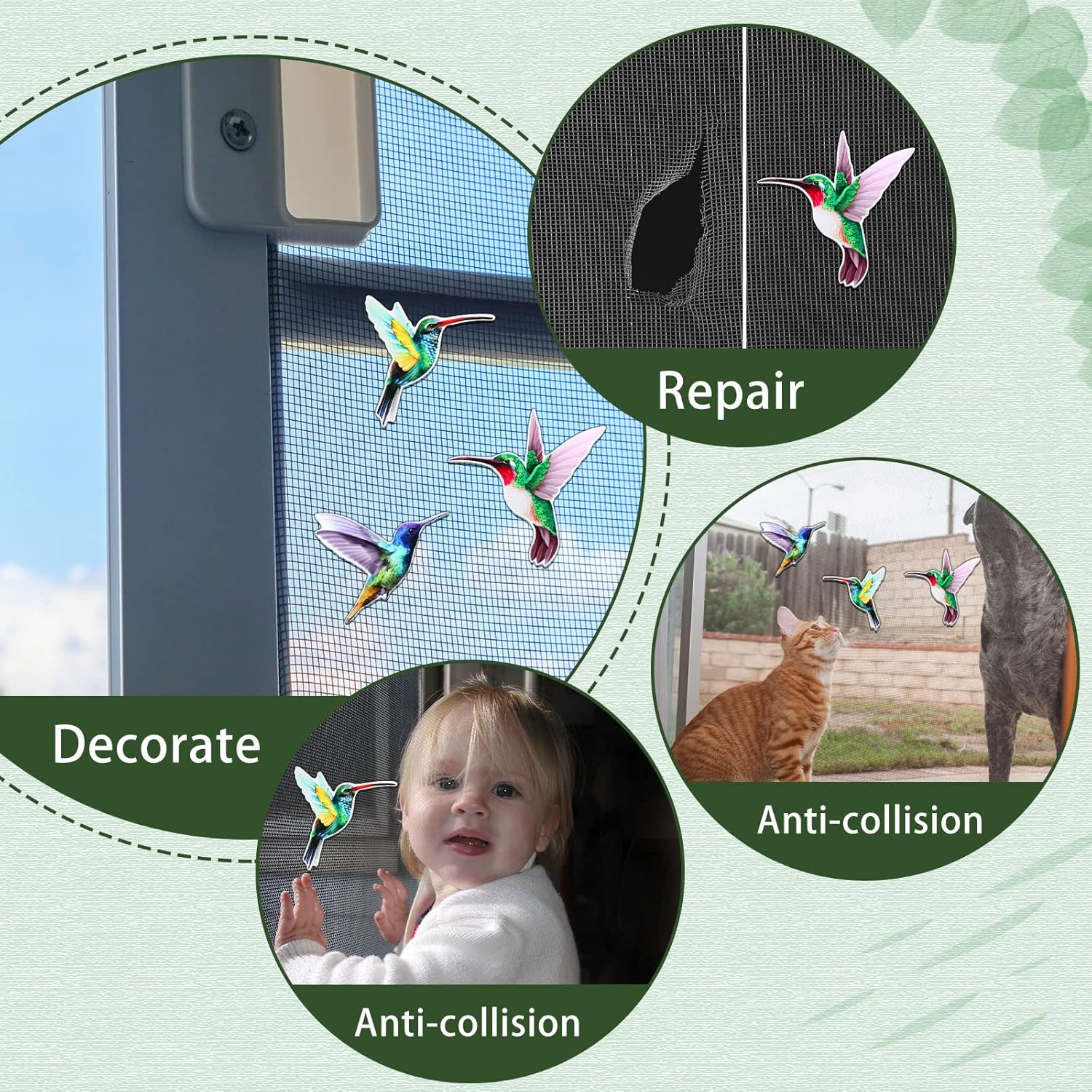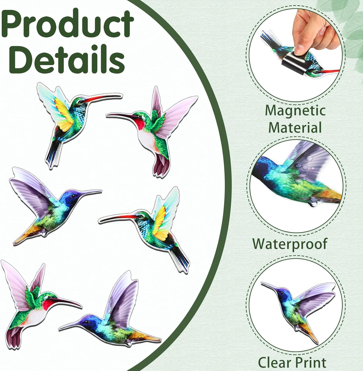 Store New Arrivals Add to Favorite View Feedback 3 Pairs Hummingbird Screen Door Magnets Double Sided Patio Flexible Magnetic Screen Saver Decorative Retractable Window Magnetic Decals for Sliding Patio Door(Classic) Description Unit Count 6.0 Count Style Classic Size 13.5 x 13.6 cm/ 5.31 x 5.35 inches Item Package Quantity 1 Color Multi Color Material Polyvinyl Chloride (PVC) Batteries Required? No Item Weight 0.14 Pounds Shape Animal Batteries Included? No Package Dimensions 6.89 x 6.81 x 0.59 inches Number of Pieces 6 Easy to Use: you just need to paste 2 magnets on both sides of the door or screen, then they will be magnetically attracted together, twist the magnets slowly until you hear a click to get a firmer fixation; Also, due to the refraction effect, there will be offsets after the product is installed Vivid Hummingbird: screen door magnets adopt the flying hummingbird element, making the decorated object look monotonous no more; They will match well with your patio and grass, reminding you of the beauty of nature Wide Applicable Surfaces: these patio screen magnets can be applied to various smooth surfaces such as windows, doors, refrigerators, and other items, adding more colors Detailed Size: sliding door screen magnets have 3 styles and each style is slightly different in size, approx. 13.5 x 13.6 cm/ 5.31 x 5.35 inches, 13.5 x 13.5 cm/ 5.31 x 5.31 inches and 13.5 x 11 cm/ 5.31 x 4.33 inches respectively Soft Material: the double sided screen bird window magnets are mainly made of PVC and magnet, lightweight and flexible, soft and removable, easy to paste or take down, conveniently and effortlessly Features: Cute hummingbird patterns: The magnetic screen door magnets have 3 styles, yet they are all delicate and bright, easy to attract guests' eyes. You can decorate different positions with different hummingbird patterns according to your preferences. Considerate presents: There are 3 pairs of decorative hummingbird screen magnets, 6 pieces in total. You can send one pair to your partners, then their home will also look more lovely. They will be happy to receive that. Specifications: Material: PVC, magnet Color: as shown in the picture Size: approx. 13.5 x 13.6 cm/ 5.31 x 5.35 inches, 13.5 x 13.5 cm/ 5.31 x 5.31 inches and 13.5 x 11 cm/ 5.31 x 4.33 inches respectively Package includes: 6 x Decorative screen door magnets Notes: Manual measurement, please allow slight errors on size. The color may exist a slight difference due to different screen displays. Please note that it is better applied for iron door screen, not suitable for thick objects such as glass. Please attention the product needs to be rotated to an appropriate angle and make a clicking sound to achieve the desired effect. In addition, the product will be slight offset after installation due to the cutting process. ABOUT US We offer the best prices around on high quality products. Our E-store includes media such as books, movies, music and games while offering electronics, toys, sporting apparel, clothing, tools, general home, garden items and more. SHIPPING We are always working hard to ensure your package arrives as soon as possible. Please understand that some factors like weather, high postal traffic, and the performance of shipping companies are outside of our control. We offer free shipping to the lower 48 states and ship within 2 business days of payment, usually sooner. We do not accept P.O. Boxes. Please provide a physical address. RETURNS We offer a 30-Day Return Policy on items which you are not completely satisfied with. You have the option for a full-refund or an exchange of the item. No returns are available on items shipped outside of the USA. PAYMENT We accept PayPal. CONTACT US This page content is yet to come Please ad us to your favorite seller and visit again later Thank You