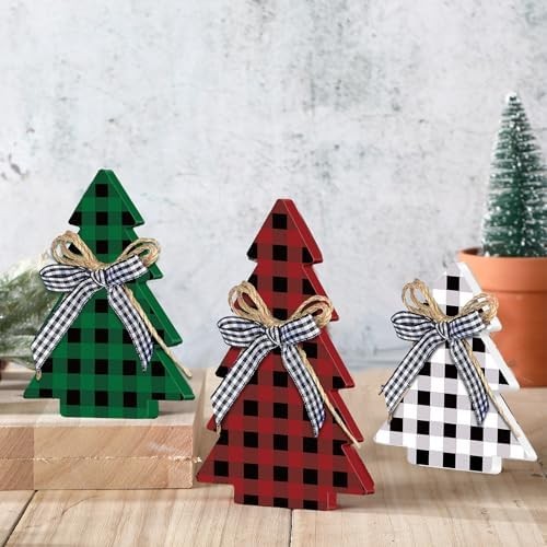 Christmas atmosphere: the Christmas decor table top is an ideal choice for holiday decorations to achieve the holiday atmosphere, they can be put on the tables, or anywhere you want to decorate; You can use your imagination to show your personalized taste Classic Xmas decor: the Xmas wood signs are designed in the shape of Christmas trees and come in different styles, each Christmas tree has a linen rope bow, different colors and bow ornament can make decoration more attractive, bringing you a good atmosphere Measurement information: these wooden Christmas trees have different sizes, they measure approximately 14 x 8 cm/ 5.51 x 3.15 inches, 12 x 8 cm/ 4.72 x 3.15 inches, 10 x 8 cm/ 3.93 x 3.15 inches; They are the same thickness, approximately 1.2 cm/ 0.47 inch, different sizes will have different decorative effects Solid material: our small table Christmas trees are made of quality wood material, smooth and solid, not easy to break, can be preserved for a long time, no smell, can rest assured use, fine workmanship, comfortable to touch, supporting a long time hanging decoration Extensive usage: our Christmas decors are delicate, beautiful and lovely, can be placed on tables, desks, mantelpieces, bookshelves or other places, to achieve a good festive atmosphere, bringing you a lot of fun