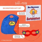 AccStation Introducing the perfect gift set for any little boy who's about to become a big brother! This 3-piece set from Tickle & Main has everything a new big brother needs to feel special and excited about his new role. First, there's the colorful storybook that comes with the set. This book is designed to educate kids about what it means to be a big brother and how to interact with a new younger sibling. It's a fun and engaging way for kids to learn about their new role in the family, and the colorful illustrations will keep them entertained as they read. But that's not all - this gift set also includes a child-sized superhero cape and matching mask! Made from 100% satin, the cape is blue on the outside and red on the inside, and measures 23” long (from the neck down) and 32” along the bottom hem. It's the perfect size for kids aged 3 to 7, and is sure to make any little boy feel like a superhero. The matching mask is double-layer felt, and is also child-sized. It's the perfect accessory to go with the cape, and will help your little one feel even more like a real superhero. With this gift set, your child will be ready to save the day and take on any challenges that come his way! And best of all, this gift set comes ready for gifting in its own custom box. So whether you're buying it for your own child or as a gift for someone else, you can be sure that it will arrive looking beautiful and ready to be opened. It's the perfect gift for any little boy who's about to become a big brother, and is sure to be cherished for years to come. So if you're looking for a gift that's both fun and educational, look no further than this 3-piece gift set from Tickle & Main. Your little one will love reading the storybook, wearing the superhero cape and mask, and feeling like a true superhero as he takes on his new role as big brother. Recommended ages 3 to 7. 3 Piece Gift Set Includes Big Brothers are Superheroes Book, Satin Cape, Mask FOR BIG BROTHER-TO-BE: Celebrate your big brother-to-be with the perfect gift set! Discover delightful big brother gifts for toddlers, including an enchanting illustrated book, a cuddly plush toy for comfort, and a fun-filled activity book. This thoughtful package will prepare and excite your child for his new role. Let him know how proud you are with a big brother cape he'll cherish for years. Get your new big brother gift set now and make his journey extra special! COMPLETE SET: Get ready for the ultimate big brother experience! This 3-piece set, featuring a storybook, felt mask, and satin superhero cape, is the perfect gift for toddlers becoming big brothers. The engaging storybook introduces the concept in a fun way. The mask and cape empower them to embrace their new role and live out their superhero dreams. Delight any young boy with this special big brother gift set, making their exciting journey even more memorable. A PRACTICAL STORY: This heartwarming story emphasizes the role of an older brother as a role model, protector, and friend. With colorful illustrations and relatable stories, it's perfect for toddlers, teaching valuable lessons about sibling love & respect. Complete with a big brother cape, it's the ideal present to show how much he cares and celebrates the big brother to be. A must-have for any family welcoming a new addition! JUST THE RIGHT SIZE: Introducing the ideal big brother gift! This 100% satin cape, measuring 23" long and 32" wide, guarantees a comfortable fit for kids aged 3 to 7. Complete with a child-sized double-layer felt mask, it's a fantastic addition to dress-up boxes and Halloween costumes. Pair it with a delightful big brother book for toddlers, and you'll make your little hero feel extraordinary! Ideal for big brothers-to-be. PERFECT HOLIDAY GIFT: Delight your little ones this holiday season with our specially curated children's gift sets, perfect for toddler Christmas gifts and baby Christmas gifts. Each set is designed with thoughtfulness and packaged for immediate gifting, making it a hassle-free choice for busy parents. Our range of toys fosters creativity, joy, and adventure, providing exciting opportunities for learning. Make this Christmas unforgettable for your little ones with our charming gift sets.