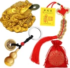 3 Pieces Feng Shui Money Frog Chinese Knot Lucky Coins Feng Shui Brass Wu Lou with Coins Keychain for Longevity Travel Safely Wealth Success and Good Luck with 1 Blessing Card and 1 Red Blessing Bag Product Details Package Dimensions: 3.31 x 2.44 x 2.44 inches Item Weight: 5 ounces Manufacturer: Yaomiao Perfume: Unscented Number of pieces: 1 Batteries required: No Included Components: Cord And String A complete set: you will get 1 piece of Chinese knot lucky coins, 1 piece of Feng Shui brass Wu Lou with coins keychain, 1 piece of Feng Shui money frog, 1 piece of blessing card and 1 red gift blessing bag Widely applicable: you can hang these good luck amulets on your door, room, office, home or car; They are not only nice party favors for the Chinese New Year, but also practical and nice gifts for yourself, families and friends, suitable for adding happy festival atmosphere Feng Shui money frog: a frog sits on traditional Chinese coins with 2 strings of coins on its back and a brass coin in its mouth, which symbolizes that wealth and treasures will be plentiful Wu Lou with coins: a Wu Lou which also goes by the name of a calabash, gourd or giver of life, which is traditionally applied to symbolize driving away bad luck Chinese knot lucky coins: Chinese coins with the square hole in the center have been applied in Feng Shui to represent lucky amulet for a very long time; The Chinese knot is often applied to express good wishes Wide range of applications:Hanging these lucky amulets on your door, room, office, home or car can bring you good luck and cure sickness according to traditional Chinese mythology. You can also give these practical and nice gifts to your families and friends to express your good wishes to them.Symbols of wealth and health:The Chinese knot lucky coins, Feng Shui brass Wu Lou with coins and Feng Shui money frog symbolize plentiful treasures and health enhancer and protector to guard you and prevent bad luck and accidents.Specifications:Material: Feng Shui money frog: resin and brassChinese Feng Shui coins: brassWu Lou key chain: brassColor: as show in the picture Package includes:1 x Chinese knot lucky coins1 x Wu Lou with coins key chain1 x Feng Shui money frog1 x Blessing card1 x Red blessing bagWarm notice:Please allow slight differences in size due to manual measurement.Please allow slight color differences due to different displays.