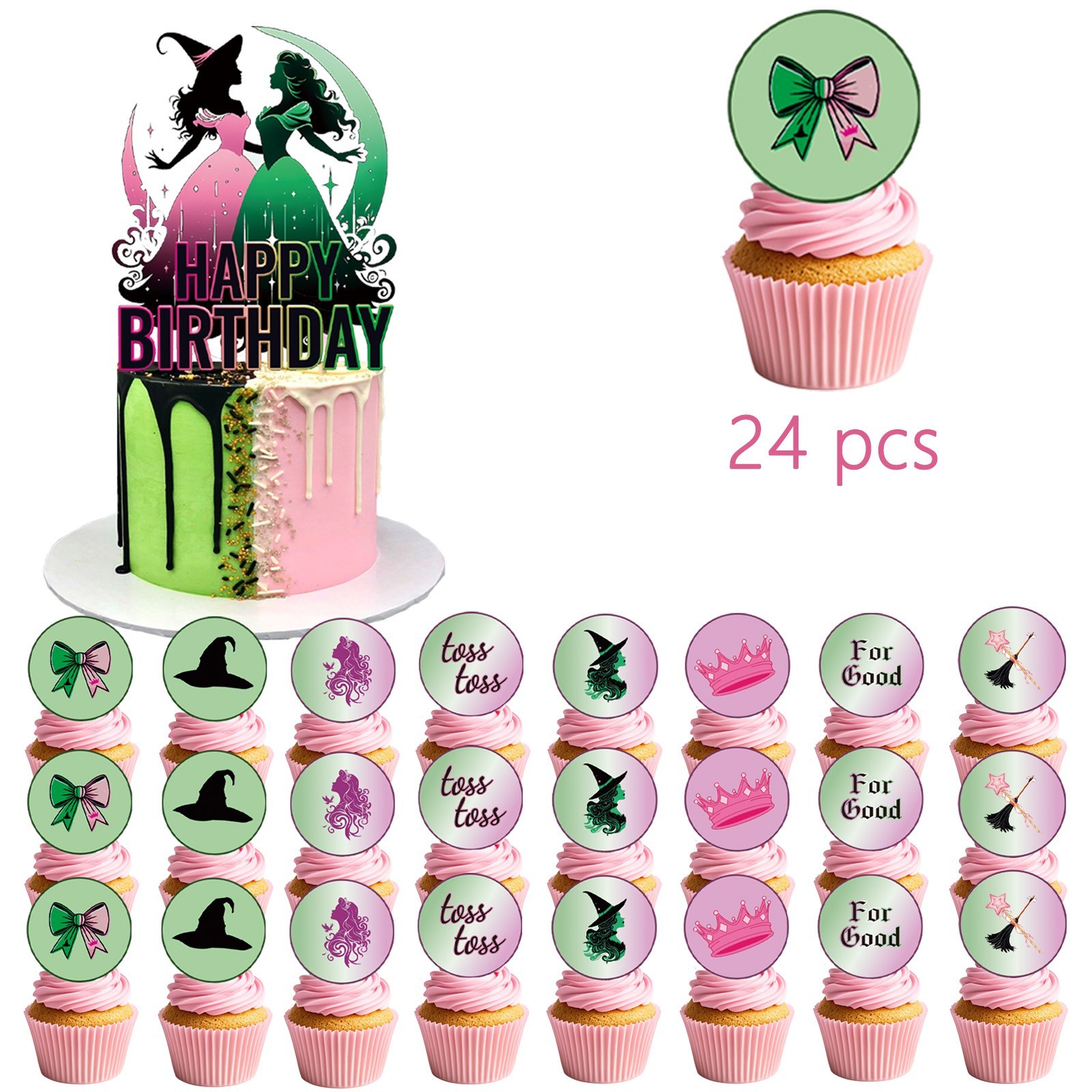 amazon listing amazon listing amazon listing Aries & Bunny More items in the shop Visit our store 【Safe Material】The cake topper is made of paper, which is non-toxic and durable. The high-quality cardboard material is reusable and safe to use, allowing you to decorate cakes with confidence. 【Easy to Use】The cake decorations can be directly inserted into the cupcakes for use, and can also be used to design and decorate cakes. Beautiful and practical, it can be designed in a variety of styles to add a cheerful atmosphere. 【Exquisite Decoration】The green and pink bow cake toppers are the focus of celebration, durable and can be used repeatedly, suitable for evil theme parties or birthdays. 【Package Included】Every set contains 25 pieces of witch birthday decorations, there are large cake decorations and 24 cupcake topper. The theme design is eye-catching and can create a unique atmosphere for birthday parties. 【Widely Applicable】The party decorations is suitable for evil birthday cake decorations for boys and girls, which is an excellent surprise gift for the party and adds more fun to the birthday party. Unique Wicked-Themed Design Versatile & Magical Decor Easy to Set Up 4.99