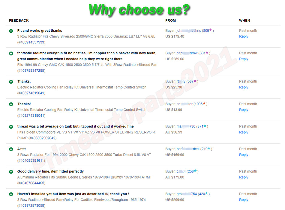 Welcome to our ebay store. Happy shopping Store Home New Arrival Ending Soon Add to Favourites View Feedback Contact us Store Categories Car & Truck Radiator Motorcycle & ATV Radiator TurboIntercooler Wheel Spacer Adapter Electric Thermo Fans Filler Neck & Cap Exhaust Head Pipe Coolant Tank&Billet Cap A-arms CV Axle Silicone Hose Turbo Exhaust Manifold/Gasket Tractor Radiator Shroud & Fan & Kit Why Choose us Free Shipping Fast Shipping Within 24 hours 60 Day Money Back Guarantee Trusted Store Satisfaction Guarantee Secure Shopping With Confidence Best Price and Good Quality Professional Customer Service ASI Stainless Steel 3'' Lap Joint Exhaust Band Clamp For Muffler Pipe Items Description Size: joins 3.0" OD pipe to 3.0" ID pipe, width of strap: 2.94inch /74.82mm. Application: Lap joint clamp is a simple, effective way to connect exhaust system components such as pipes, mufflers, catalytic converters etc. Advantage: Made from high quality T304 Stainless Steel No welding design, easy to install or remove. It is recommended that put exhaust sealant on the pipes before installation. Material: 304 stainless steel band, zinc-plated M10 bolt and nut, steel gasket, aluminum alloy I-block. Feature: The band clamps make the force of 360 evenly distributed to provide a seal. Torque: 63 N·m. Shipping Payment Return Policy Feedback About us Shipping Shipping: - Most of our orders ship within 1 business day of being placed. We ship our products primarily through FedEx Ground. - Delivery is not available to P.O. Box and the states of Alaska, Hawaii or Puerto Rico. - Most of our products ship FedEx Ground or Home, but some larger items (such as rattan furniture sets) do ship FedEx LTL (Freight) and can take up to 6 business days to arrive from the time the product ships. These shipments will need to be scheduled for an appointment to deliver by the local FedEx facility when it arrives in your area (the appointment will need to be scheduled within three days from their first contact attempt). Someone must be present to take delivery of LTL shipments and sign for the delivery (drivers only offload the product into the driveway; any additional help by the driver including a lift-gate will require an additional charge). - We can only ship your order to the PayPal verified address given to us at the time you checkout on eBay. Please verify that this address is the correct one you wish to have your package sent to. If an address change is needed you will be responsible for any fees associated. - If FedEx cannot deliver it for any reason (including they cannot reach you with the telephone number provided in the order or there is no phone number in the order), it will be re-consigned back to our warehouse and treated as a refused package where the order will be refunded minus a 20% processing fee. Payment Payment: - We accept PayPal and major credit cards (Visa, Mastercard, & American Express) -Immediate payment is required after the purchase Return Policy Return policy: - All return items MUST be in brand new condition which means the item is never installed and kept in the original packaging, otherwise a 20% restocking fees will be charged. - We will not send replacement before we get a confirmation from insurance claim or the returned item from customers. - All shipping and handling fees are non-refundable in any circumstances. - You agree with the policies and terms stated on this listing by buying or bidding on this item. Please do not buy or bid if you disagree with our policies and terms. Feedback Feedback: - We leave positive automatically by our system after received positive feedback. - We maintain high standards of excellence and strive for 100% customer satisfaction! Feedback is very important to us, please contact us if you are going to leave us a neutral or negative feedback, we will try our best to solve the problem. About us About us: 1. Welcome to my shop, we offer an extensive range of products selected by our professionals’ superiority in details and quality is a high priority. We also have a high-standard team, qualified by authorized organizations to ensure products are of the highest quality. 2. As an internet seller, we collaborate with excellent international transport companies, and in Australia and the United States we have our own warehouses, offering the most convenient delivery service possible. On-time shipping and reliable quality control are key areas of importance in our shop. 3. We are increasingly expanding international markets based on high quality products, excellent service, reasonable prices and timely delivery. Please contact us at any time for more information. We work hard to make sure EVERY CUSTOMER 100% approvingly. Store Home | New Arrival | Ending Soon | Add to Favourites | View Feedback | Contact us Copyright ? 2020, primeautoparts2021 All Rights Reserved