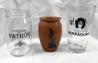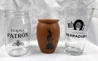 3 tequila glasses New Espolon Tequila cantarito cup New Herradura/El Jimador pint glass Pre owned Patron mason jar glass Nice to add to your collection Patron glass looks like new