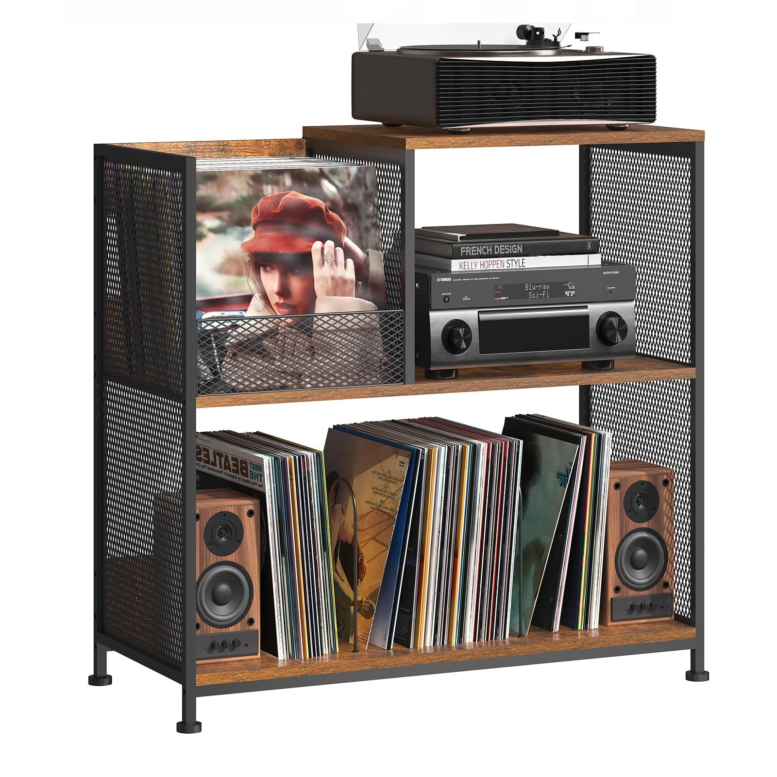3 Tier Record Player Stand Holds Up to 300 Albums with 4 Adjustable Divider for Turntable Stand, Large Vintage Record Player Table with Vinyl Record Holder Cabinet-Patent Pending - Buy Now with Fast Shipping! 3 Tier Record Player Stand Holds Up to 300 Albums with 4 Adjustable Divider for Turntable Stand, Large Vintage Record Player Table with Vinyl Record Holder Cabinet-Patent Pending Product Details Color: Vintage Brown Special Feature: 3-Tier Product Dimensions: 14.2"D x 28.28"W x 30"H Shelf Type: Tiered Shelf Number of Shelves: 3 Color: Vintage Brown Special Feature: 3-Tier Product Dimensions: 14.2"D x 28.28"W x 30"H Shelf Type: Tiered Shelf Number of Shelves: 3 Room Type: Office Finish Type: Powder Coated Assembly Required: Yes Mounting Type: Floor Mount Recommended Uses For Product: Media, Vinyl Rolls Included Components: 4 divinders Brand: Huxitocan Style: Record Player Stand Vintage Manufacturer: Huxitocan Part Number: MX-CPZ-02-US Item Weight: 27.3 pounds Item model number: MX-CPZ-02-US Size: Table top: 16.57"(L) x 14.2"(W) Finish: Powder Coated Shape: Rectangular Power Source: Corded Electric Special Features: 3-Tier Batteries Included?: No Batteries Required?: No Warranty Description: 1 Date First Available: September 28, 2022 Key Features ✅ Multi-Occasions Use Vintage simple and generous-style record player stand, suitable for various occasions, including living room, study, bedroom, office, etc, Also can serve as a bookcase, vinyl record storage cabinet, bedside table, file cabinet, etc. ✅ Excellent CraftsmanshipMade of thick particle board, solid metal legs reinforced and solid Iron pipe, the record player stand features long-lasting durability and is not easy to deform. It comes in a retro brown color, combining rustic elements with its modern silhouette. The metal frame is powder-coated black for durability and easy to clean ✅ Larger Storage SpaceThe turntable holder can hold up to 250 vinyl records. The headspace and middle space can freely choose to place audio, speakers or other small objects. This record cabinet is designed to hold a large collection of vinyl records and media essentials while also holding your turntable. It fits perfectly anywhere in your home or office.Overall Dimensions: 28.28"(L) x 14.2"(W) x 32.7"(H). ✅ With Adjustable Record Holder3-tier design provides plenty of space for storing a record player or other studio equipment. You can put the record player on the top shelf, and place some ornaments or books, magazines, and records on the middle shelf. Come with 4 dividers, and pre-drilled 10 holes, you can adjust the slot width according to your needs, and it can hold up to 250 albums. ✅ Easy to Assemble This vinyl record stand comes with detailed instructions. Each part has a clear number mark, open the installation instructions in the package, follow the steps of picture and text to install, no complicated installation skills, one person can easily install. If you have any questions about assembly or stand, please contact us for support and solution. Product Description