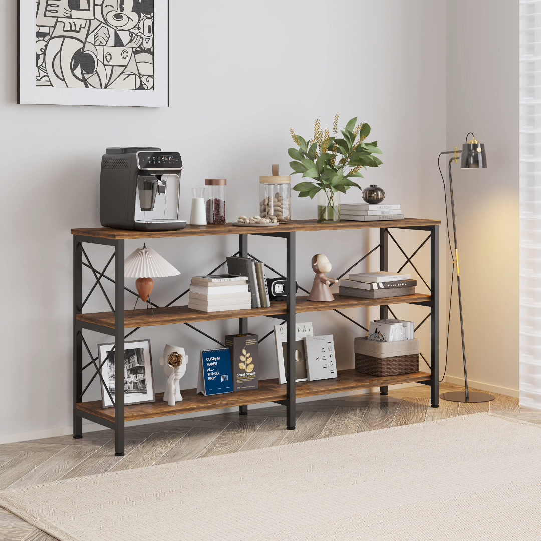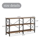 3 Tier Sofa Hallway Table Long Entryway Console Table Living Room TV Stand with Storage Shelves Brown Specifications: Color: rustic brown Material: MDF, metal Overall Dimension: 55.12" X 13.78" X 29.33" Package Includes: 1pc console table and all accessories for installation Features: 【Long Console Table with Storage Shelves】: Carefully designed shelves and versatile storage functions of this long entryway table allow you to effortlessly organize items in your hallway, behind couch, living room or bedroom. The storage shelves of this console sofa table provide an ideal space to display your favorite books, magazines, or decorations, adding depth and personality to your space. 【Extraordinary Durability and Sturdiness】: The combination of the high quality MDF shelves and four X-shaped heavy duty square steel tube frames ensure the durability and stability for the metal and wood console table. Besides, the specially designed angle brackets, flat brackets and anti-skip pads provide extra support for the long sofa table. The top and bottom shelves can hold up to 300 LBS, and the middle shelf can hold up to 150 LBS. 【Multifunctional and Stylish】: Whether you choose to use this in your living room as a foyer hallway table for entryway, spare bedroom as a couch table behind sofa, study room as a 3 tier bookshelf or dining room as a buffet, this modern console table will make a stylish and practical addition to your home. 【Easy Assembly】: Our entryway console table is intelligently designed for easy assembly, requiring only simple steps that can be completed in approximately 25 minutes. The detailed assembly instructions provided will guide you through each step, allowing you to quickly enjoy a comfortable home environment. Tips: You may receive 2 or more flat packages for some products in our shop, please track all the tracking numbers we update to you. Notes: It takes some time to install the furniture, please don't be worried about the installation, and please pay attention to your safety while installing. We will ship from the US warehouse, you need to wait longer time than usual during the current special epidemic situation, please track the package delivery information at any time. If there is no stock for the accessories which are necessary for installation in the US warehouse, we will arrange the replacements from our warehouse in China directly, but it will take longer time for your patient waiting. Please do not be hesitate to contact us for any questions you have before or after purchasing, we are always online and will try our best to help you to solve it.