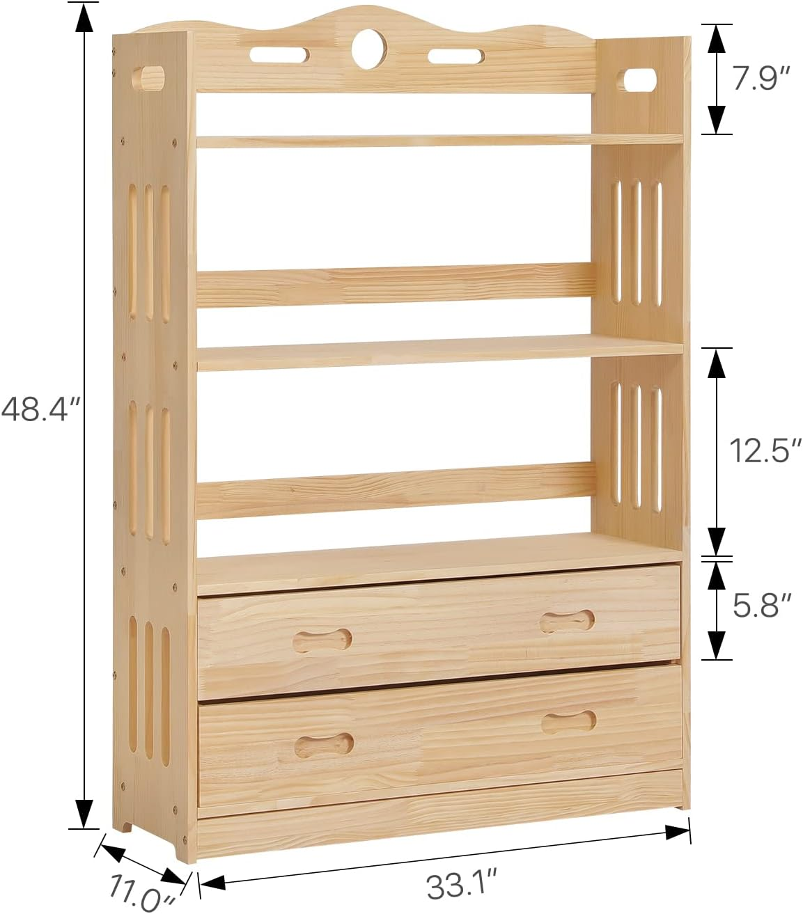 Store New Arrivals Add to Favorite View Feedback Contact 3 Tier Bookcase with Open Shelves and 2 Drawers, Solid Wood Storage Organizer Book Shelf Cabinet Display Organizer for Kids Room Living Room Bedroom, Natural Description Item model number A01A4A016A6 Style Modern Number of Items 1 Unit Count 1.0 Count Room Type Family Room, Living Room, Home Office, Library Assembly Required Yes Product Dimensions 11"D x 33.1"W x 48.4"H Installation Type Freestanding Material Wood Mounting Type Freestanding Product Name Bookcase Finish Type Wood Included Components Assembly Tool, Drawer Unit Age Range (Description) Adult Back Style Backless Item Weight 40.1 pounds Number of Shelves 4 Special Feature Durability,Large Capacity Color Natural Furniture Finish Wood Shelf Type Wood Shape Rectangular Recommended Uses For Product Bookcase,Bedroom,Living Room Model Name A01A4A016A6 Product Care Instructions Wipe with Damp Cloth Size 4 Shelves (Height 48.4") Feature - The bookcase is designed with narrow back rails, which can prevent items from falling off the shelves. The overall design of the book shelf is simple and stylish, matching most decoration and furniture style. Easy To Install - We provide all the assembly accessories for this item, you just need to follow the detailed image-text instruction to complete the installation. If you have any questions, please feel free to contact us. Large Capacity - Multi-layer book shelves, with various compartments provide ample holding and display space for keeping books, toys, plants, and ornaments, etc. The top rippled edge and the hollow pattern design add interest and fun. Material - Made of harmless wood, this multi-tier bookcase has the characteristics of durability, wear resistance, impact resistance, moisture resistance, and uniform surface color. Moreover natural material gives you a comfortable life without worrying about harming your health. Multifunctional - This wooden bookcase can be used to be a plant stand, display rack, shoe shelf, storage organizer in your living room, bedroom, kitchen, balcony, office, corridor, garden or any other space, by displaying books, family photos, potted plants, clothes, CDs, handicraftss, utensils. Product Description MONIBLOOM Wood 4 Tiers 2 Drawers Bookcase Shelf Stand Rack Heavy Duty Natural Want to bring order to a messy place and add the beauty of nature to your room? This three-decker bamboo storage cabinet features clean lines and a concise style that brings an elegant appearance and classic sense to your home. With its high-quality material and large capacity, this shelf can contain many daily items like books, toys even some storage boxes. The additional back slats can keep items from dropping off. Premium Solid Wood Made of natural wood, this product has the characteristics of durability, wear resistance, impact resistance. Thickened Panel Made of high-quality panels, strong and durable, not easy to break. Hollow Out Pattern The hollow-out design adds a modern and stylish sense to the furniture. Reinforced Design Reinforced design and structure make sure the furniture remain stable and not falling over. About MoNiBloom Inspired by the popular trend and cutting-edge technology, we always are exploring the latest and the best product you desire. We aim to bring you a comfortable and convenient experience with carefully-designed, aesthetic, and functional products. You can also disassemble the layer board through the screws beside to gain different heights to place your items. Durable Natural Wood Space Saving Can Placed Various Items Plenty Storage Space Simple Installation Item Specifications Brand MoNiBloom Product Type Bookcase Color Natural Material Wood Finish Varnished Shelves Included 2 Shelves Included 4 Mount Type Free-Standing Overall Width - Side to Side 23.6" Overall Depth - Front to Back 11.0" Overall Height - Top to Bottom 48.4" Intended and Approved Use Residential Use Additional Tools Required All Tools Included Avoid Power Tools Yes Adult Assembly Required Yes Product Care Wipe Clean with a Damp Cloth ABOUT US We offer the best prices around on high quality products. Our E-store includes media such as books, movies, music and games while offering electronics, toys, sporting apparel, clothing, tools, general home, garden items and more. SHIPPING We are always working hard to ensure your package arrives as soon as possible. Please understand that some factors like weather, high postal traffic, and the performance of shipping companies are outside of our control. We offer free shipping to the lower 48 states and ship within 2 business days of payment, usually sooner. We do not accept P.O. Boxes. Please provide a physical address. For shipping outside of the continental USA, we only use eBay's Global Shipping Program.The item is shipped to KY and then sent to the rest of the world. International customers are responsible for all duties and taxes. Continue to check out in order to calculate costs for shipping the item to your country. Messages regarding eBay's Global Shipping Program MUST be directed at eBay EXCLUSIVELY. RETURNS We offer a 30-Day Return Policy on items which you are not completely satisfied with. You have the option for a full-refund or an exchange of the item. No returns are available on items shipped outside of the USA. PAYMENT We accept PayPal. CONTACT US This page content is yet to come Please ad us to your favorite seller and visit again later Thank You CUSTOMER SATISFACTION We try our very best to make sure every customer is completely satisfied. If there's a problem, message us! We're happy to help.