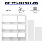 Features: High quality and durable in use The design of 4 open locker cubes, 5 back closed locker cubes It is easy to clean and install It makes the bathroom looks more clear A good helper for you to save more spaces Suitable for bathroom, kitchen, bedroom, living room, office, etc Specifications: Color:White Material: MDF+Particle board OverSize:35.47" x 11.85" x 35.82" Nine grid block size: 11.22" x 11.34" x 11.73" Item weight: 41.45lbs Shelf load-bearing: 11lbs Board load-bearing: 44lbs
