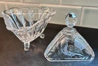 This charming set of three vintage candy, relish, and nut dishes showcases timeless elegance and intricate craftsmanship. Each piece is made of beautifully cut crystal, adding a touch of sophistication to any table or display. Round Lidded Candy Dish – A lovely 6" diameter heavy cut crystal dish featuring a classic starburst pattern. Weighs approximately 16 oz. Triangular Lidded Candy Dish – Measuring approximately 5", this sweet dish is adorned with a delicate etched bird pattern, adding character and charm. Weighs approximately 13 oz. Triangular Relish/Nut Dish – A versatile 5" dish with an eye-catching swirl and starburst pattern, perfect for serving small treats. Weighs approximately 12 oz. Each dish is a beautiful vintage find, perfect for collectors or those who appreciate timeless glassware. Please refer to photos for more detail. +++ 🔹 A Note on My Listings: I am not a historian or antique dealer, but I do my best to research and provide accurate information. Please review the details and conduct your own research if needed. I encourage you to ask any questions before purchasing—I’m happy to help! I strive to represent all items accurately, whether they come from my own home or another well-loved source. If you notice anything that seems incorrect or misrepresented, or if you have any concerns after receiving your item, please reach out directly —I’ll gladly assist in resolving any issues. ✨ Thanks for looking! Feel free to message me with any questions. ✨