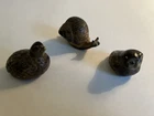 Vintage lot of 3 miniature Otagiri brown stoneware miniature figurines. Lot includes snail ( 2 1/4” x 1 1/4”,) owl (1 1/4” x 1 1:4”,) and quail (1 1/2” x 1 1/3”.) Quail stamped Japan and snail has red and gold Made in Japan foil label. All in great shape, no chips or cracks. Clean. Cute trio. Thanks for looking. Now for the fine print…… I use the good old USPS for all shipping. Despite their recent increase in shipping rates, I try to charge fair shipping. On certain items I charge a $1.00 handling fee to offset the price of bubble wrap, boxes, Styrofoam peanuts, etc. I’m very happy to combine shipping on multiple items that you purchase. I ship every day; Monday through Friday (except for snow and ice events) but do not ship on Saturdays.