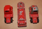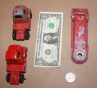 Description : 3 Vintage Tootsie Toys 2 International Harvester Semi Trucks & 1 Flatbed Trailer Red Pressed Steel Tags:(Ford Pickup Mack Tractor Tonka Corgi Siku Matchbox Ertl Die Cast International Cab Tootsietoy Diecast). Bottom Marks:{Tootsietoy R Chicago 24 USA (raised, on all three items)}. Trucks Measure:(3.6" long x 1.9" wide x 2.3" tall & Weighs 7.0 oz & 7.6 oz.), Trailer Measure:(5.9" long x 1.8" wide x 1.6" tall & Weighs 8.4 oz.). Condition : Used, with some paint loss and light to medium wear. Shipping: Most items are shipped the same day as ordered or the next business day. Fragile items are double boxed with extra padding. Combined Shipping : I combine shipping (if possible) upon request. Free Returns: If for any reason, you are not satisfied with your purchase, please return it for a full refund. Thank you. Sales Tax: Charged Only if applicable in your state. Service: Your item is in good hands for packing, shipping, customer service and more. Buy With Confidence. Thank You. Weights and Measurements: All are approximate. In-House Stock #831