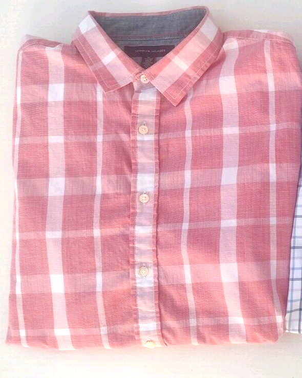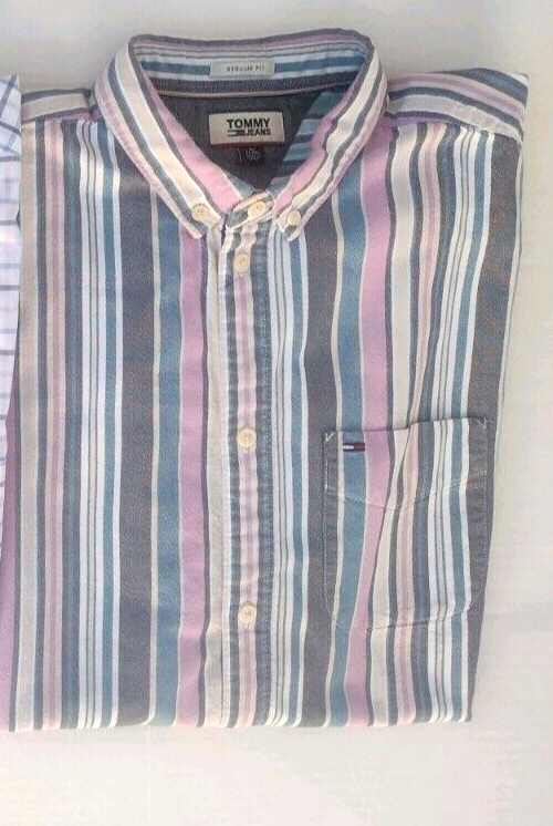 Elevate your wardrobe with this lot of 3 men's long sleeve button-up dress shirts from Tommy Hilfiger and Club Room, available in size XL. The comfortable regular fit and button-down collar ensure a smart and timeless appearance. Crafted from pure cotton, these shirts offer both comfort and durability, with the added convenience of easy care. Whether layered under a sweater for cooler seasons or worn alone in warmer weather, these shirts are designed to suit all seasons, making them an essential addition to any discerning gentleman's collection.