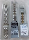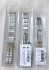 3 for 1 Ladies Metal Bracelet Watch Bands Adjustable Ends & Links Stainless Specifications for the two tone bracelet: Fits any 10-13mm watch 6 1/4" (160mm long); length can be adjusted on the clasp and by removing links Spring bars inc luded Slim band (about 1/8" thick) Marked Stainless Steel Specifications for the bracelet with large links: Width is 12-14mm 12 mm at the narrowest part of the bracelet by the clasp 15 mm at the widest part of the bracelet by the ends The ends of course are spring loaded telescoping shafts that adjust to any width between 12-14 mm. Length is 6 5/8" and can be adjusted smaller by removing links or making micro adjustments on the clasp WHITE SILVER TONE Marked stainless steel Specifications for the small "pebble" links bracelet: Width is 12-16mm Length is 7 1/16" and can be adjusted smaller by removing links or making micro adjustments on the clasp Marked stainless steel Let us know if you'd like more details on each band or find the individual bands in our store. Free shipping in the U.S. by First Class Mail. I nternational purchases outside the USA are shipped via First Class International mail. How to Make Sure You're Buying the Right Watch Band Size Sometimes the correct size is printed or marked on the back of your old strap, but if it's not there you can measure it yourself. Use a metric (mm) ruler and measure between the watch band "lugs." If you don't have a metric ruler, convert your English (Imperial) measurement below. Inches Millimeters 1 1/5" (1.18") 30mm 1 1/10" (1.10") 28mm 1" 26mm 15/16" 24mm 7/8" 22mm 13/16" 21mm 25/32" 20mm 3/4" 19mm 11/16" 18mm 21/32" 17mm 5/8" 16mm 19/32" 15mm 9/16" 14mm 1/2" 13mm 15/32" 12mm 7/16" 11mm 3/8" 10mm 11/32" 9mm 5/16" 8mm 1/4" 6mm Feedback from Our Watch Band Buyers: "Excellent service, recommended seller" "Super fast, nice watchband" "Good price...fast shipping..." "Great service" "Great seller, fast shipment" "Great transaction! Thank you! Great communication! Recommended! Fast shipping!" "Excellent product-quick shipping-reasonably priced-completely satisfied" "Great to deal with AAAAAAAAAAAAA+++++++++++++++" "Great item & price! Buy from this seller!! A+++" "Item as promised, fast shipper!" "The watch band arrived today. It looks great on my watch!! A++" "Excellent deal, A+++++" "Excellent seller. Highly recommended. Would like to do business again. Super A++" "Lightening quick delivery" "Just as described. Looks great." "SUPER QUICK, PROFESSIONAL TRANSACTION. THANKS!"