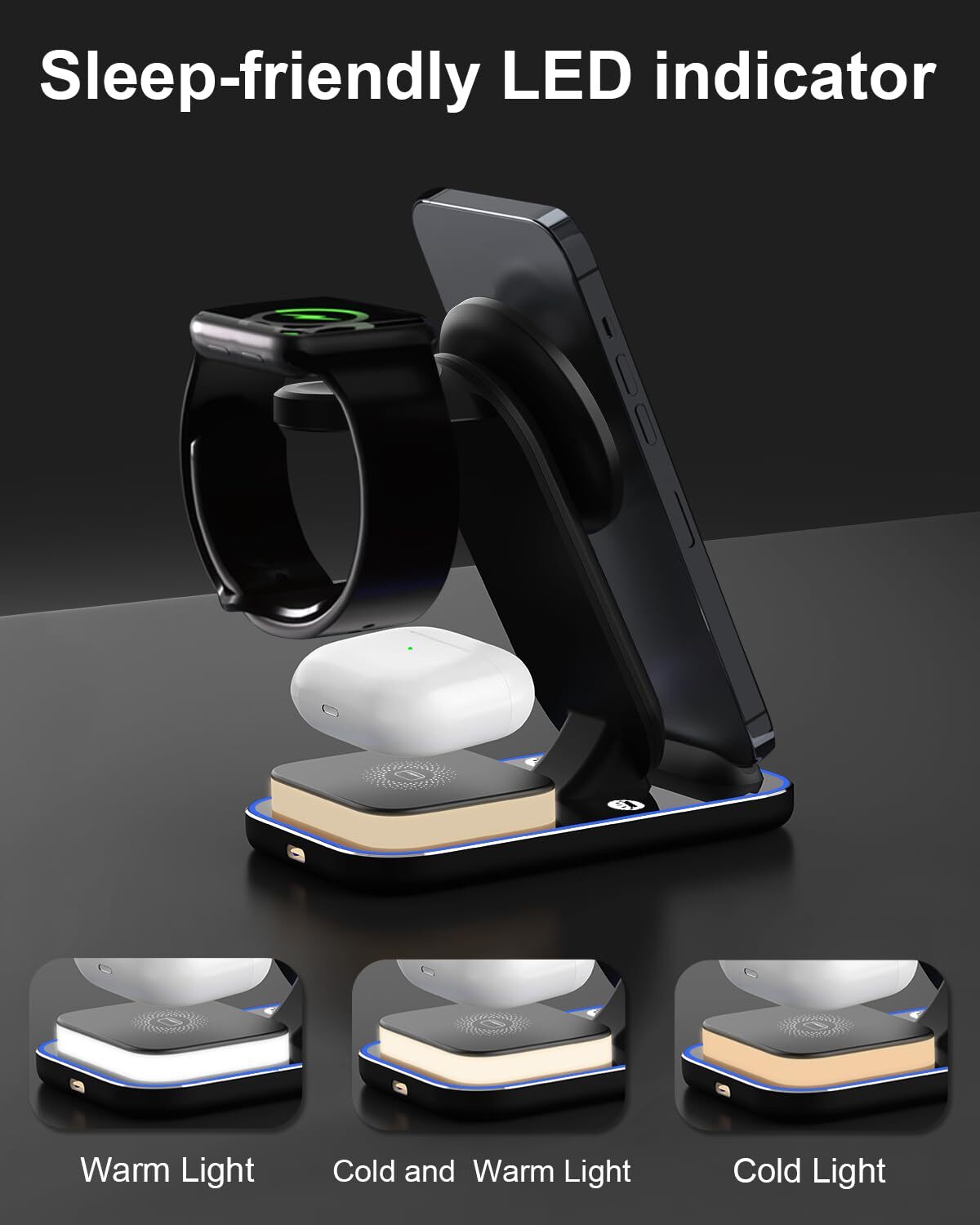 3 in 1 Wireless Charging Station for Apple,Wireless Charger Station for iPhone & Apple Watch iWacth - Charging Stand Dock for AirPods 18W Certified Magnetic,Adjustable Angle Compatibility You Can Trust: our 3 in 1 charging station extends its magnetic wireless capabilities to include for iWatch and AirPods, covering your entire ecosystem of Apple devices.including iPhone 15, 15 Pro, 15 Plus, 15 Pro Max iPhone 14, 14 Pro, 14 Plus, 14 Pro Max, iPhone 13, 13 Pro, 13 Pro Max, 13 Mini, iPhone 12, 12 Pro, and 12 mini,iWatch Ultra 9/8/7/SE/6/5/4/3/2 and AirPods Pro/3/2/1. Fast & Safe Charging in Harmony: Experience rapid charging with our 18W fast charger, designed to fully charge in just 2-3 hours,30% faster than standard wireless chargers. Our charging station for multiple devices apple boasts advanced FCC approval, ensuring safety with features like temperature control, voltage protection, and short-circuit prevention. Plus, strategic cooling holes keep your devices cool, making it the perfect addition for tech-savvy Apple users seeking efficiency without compromise. Adjustable Charging Experience&Sleep-Friendly: our iphone charging station adjustable design allows for quick and easy sliding adjustments, ensuring a perfect fit for your mobile phone and optimal charging alignment every time. Plus, Elevate your charging routine with our Apple magnetic wireless charger stand, featuring an intelligent, sleep-friendly LED indicator that softly illuminates your iPhone charging status without disrupting your rest. The soft blue light confirms connection and charging progress, guiding you through a seamless and intuitive experience. Streamline Your Charging Experience: Say goodbye to the chaos of multiple chargers and cables. Embrace the sleek design of our 3 in 1 charging solution, which not only declutters your space but also powers up your devices with efficiency and style. Designed for the future, yet compatible with your current tech favorites, our charging station is the epitome of convenience and innovation. 【What You Will Get】Our package includes 1* 3 in 1 Wireless Charger ,1*18W wall adapter,1*USB-C Charging Cable,1*User Manual.One device allows you to have a clean desk and a beautiful smile. if you have any question on this wireless iphone charger, please contact us we will offer you a best solution within 24 hours. Shipping We offer FREE shipping on all orders! We ship within Three business days of payment, usually sooner. We use a selection of shipping services such as UPS, FedEx, USPS etc. We only ship to the lower 48 states, no APO/FPO addresses or PO Boxes allowed. Local pickups and combined shipping options are not provided at this time. Return You can return a product for up to 30 days from the date you purchased it. Any product you return must be in the same condition you received it and in the original packaging. Please keep the receipt. Payment We accept payment by any of the following methods: PayPal Please pay as soon as possible after winning an auction, as that will allow us to post your item to you sooner! Feedback Customer satisfaction is very important to us. If you have any problem with your order, please contact us and we will do our best to make you satisfied. Contact Us If you have any queries, please contact us via ebay. We usually respond within 24 hours on weekdays. Please visit our eBay store to check out other items for sale! Thank you for shopping at our store.