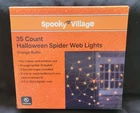 Get ready for a spooky Halloween with this Spooky Village spider web light set. The set includes 35 counts of multicolor lights that create a mesmerizing effect on any surface. The 5-foot long light strand is made of durable plastic and features suction cups for easy attachment. Perfect for indoor and outdoor use, this corded electric light set is sure to add a touch of Halloween spirit to your home decor. Whether you're throwing a Halloween party or simply want to create a spooky atmosphere, this Spooky Village light set is the perfect choice. Auction is for 3 boxes! Shipping is $12.99! We ship all items with the utmost care.