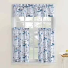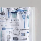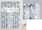 Microfiber 1-Piece Bistro Cooking Theme Semi-Sheer Rod Pocket Kitchen Curtains, 54"x36", Bistro / Blue 3-piece set includes 1 valance and 2 tier curtains Featuring kitchen utensils motifs, it is a fun update to any kitchen window Two 54" x 36" tiers and 54" x 14" valance included Rod pocket header is easy to hang and stylings; Rod pocket fits a curtain rod up to 0. 75" in diameter Material: Polyester Curtain rod not included.