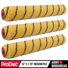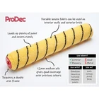 ProDec 15" x 1.75" Medium Pile Woven Acrylic Refill Fast Coverage Painting with Emulsion and Masonry Paints on Interior and Exterior Walls and Ceilings With its distinctive tiger stripe pattern, this is ProDec's most popular roller used by the trade with emulsion and masonry paints due to its excellent balance of performance and value for money. Giving a trade quality finish, it picks up plenty of paint without over-loading, enabling you to effortlessly power through large areas such as walls and ceilings, with even paint application for efficiency and excellent coverage to minimise the number of coats required. The fabric is machine woven, giving the fibres a double anchor with low lint and excellent durability, standing up to heavy duty use and washing out well after use, enabling the roller to be reused time after time. The 12mm (0.5") medium pile is suitable for interior emulsion paints (eg. matt, silk, eggshell) on smooth surfaces such as plaster, drywall, ceilings (including light to medium textured plasters such as artex) and masonry paints on semi-smooth surfaces such as brick. It is suitable for colour changes both similar to the previous one and more substantial such as light to dark or vice-versa (the opacity/covering power of the paint is of course critical as well). This roller is 15” (375mm) width, which is ideal for ultra-fast coverage of broad wall areas and ceilings when used in conjunction with an extension pole. It has a 1.75" (44mm) trade diameter core, so ensure you have a compatible double arm roller frame. For best results the roller should be washed in cold or tepid water before first use to remove any loose fibres. Stand the roller on its end and allow it to dry fully (ideally overnight) before using. For heavily textured masonry surfaces, consider using a longer pile roller such as ProDec's Heavy Duty roller which is cut to 18mm to better get into the texture. Frame Fit 15” ProDec Cast Metal Double Arm Frame, (EBAY ITEM 362253382395) With its distinctive tiger stripe pattern, this is ProDec's most popular roller used by the trade with emulsion and masonry paints due to its excellent balance of performance and value for money. Giving a trade quality finish, it picks up plenty of paint without over-loading, enabling you to effortlessly power through large areas such as walls and ceilings, with even paint application for efficiency and excellent coverage to minimise the number of coats required. The fabric is machine woven, giving the fibres a double anchor with low lint and excellent durability, standing up to heavy duty use and washing out well after use, enabling the roller to be reused time after time. The 12mm (0.5") medium pile is suitable for interior emulsion paints (eg. matt, silk, eggshell) on smooth surfaces su