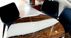 Size : 30"x30" Inches Our epoxy tables are custom-made, and we strive to use the same type of wood as depicted in our advertising pictures. However, it is not always possible to find an exact match, which may result in slight variations in the epoxy color and wood grain pattern. It's important to keep in mind that the table you receive may not be an exact replica of the advertising picture. We ensure that our clients are informed of every step of the process, from the selection of the wood to the final finish of the table. We keep our clients up-to-date throughout the process to ensure transparency and avoid any misunderstandings. Additionally, our price includes air delivery right to your doorstep via DHL/Fedex/UPS and insurance protection. Please note that you may be responsible for paying any applicable tax and duty on delivery. If you have any concerns or doubts, we highly recommend addressing them before making a purchase. Clearing any doubts beforehand will help avoid any issues and ensure a smooth buying process. It's important to note that any accessories depicted in the advertising images, such as knives, chairs, or lighting, are not included with the product and are only used for photography purposes. Additionally, please keep in mind that the price of the product does not include any type of legs. If you would like legs included, we can provide them for an additional cost. We recommend addressing any questions or concerns before making a purchase to avoid any misunderstandings. Made To Order....