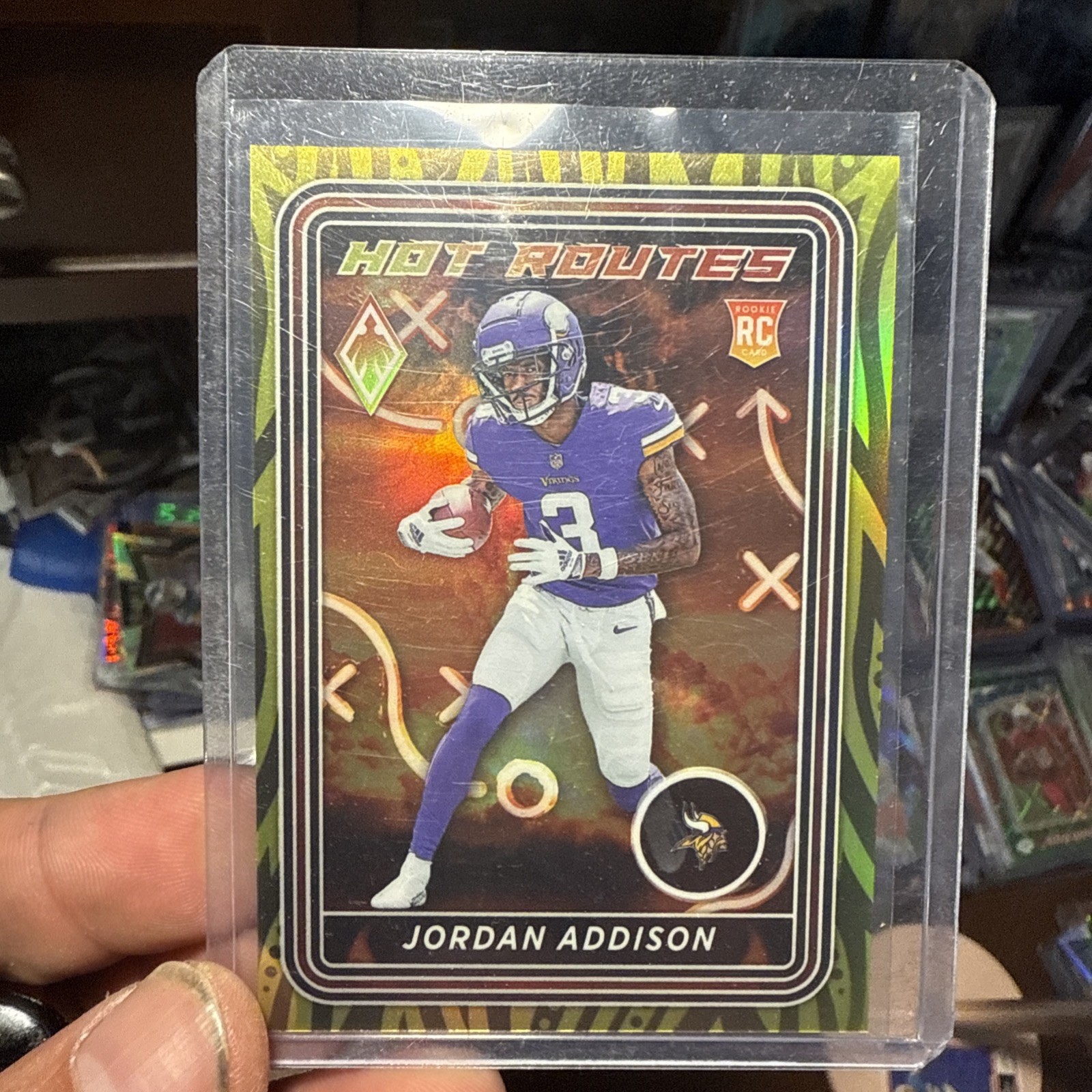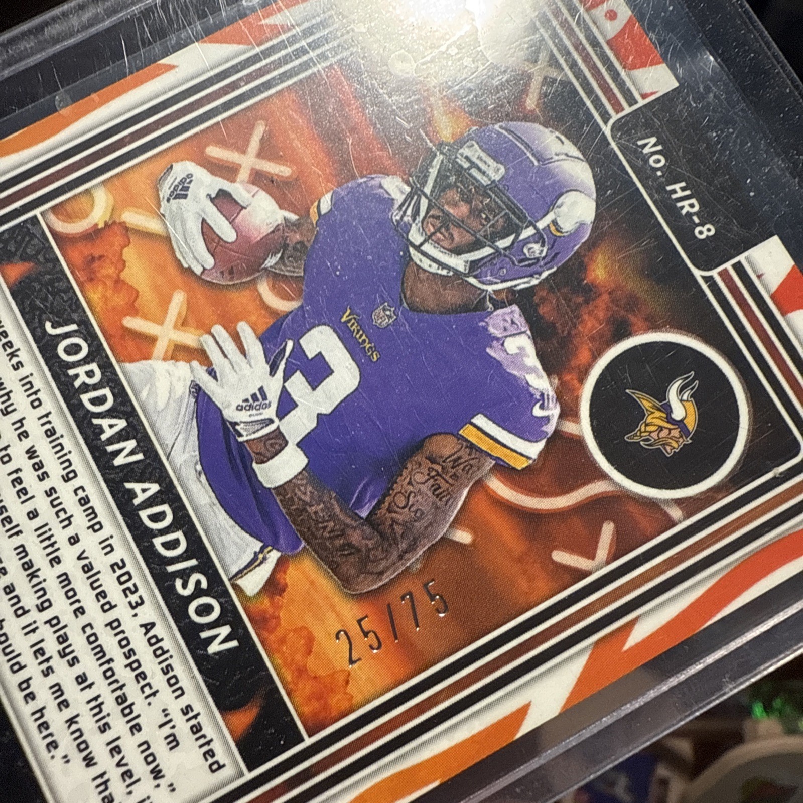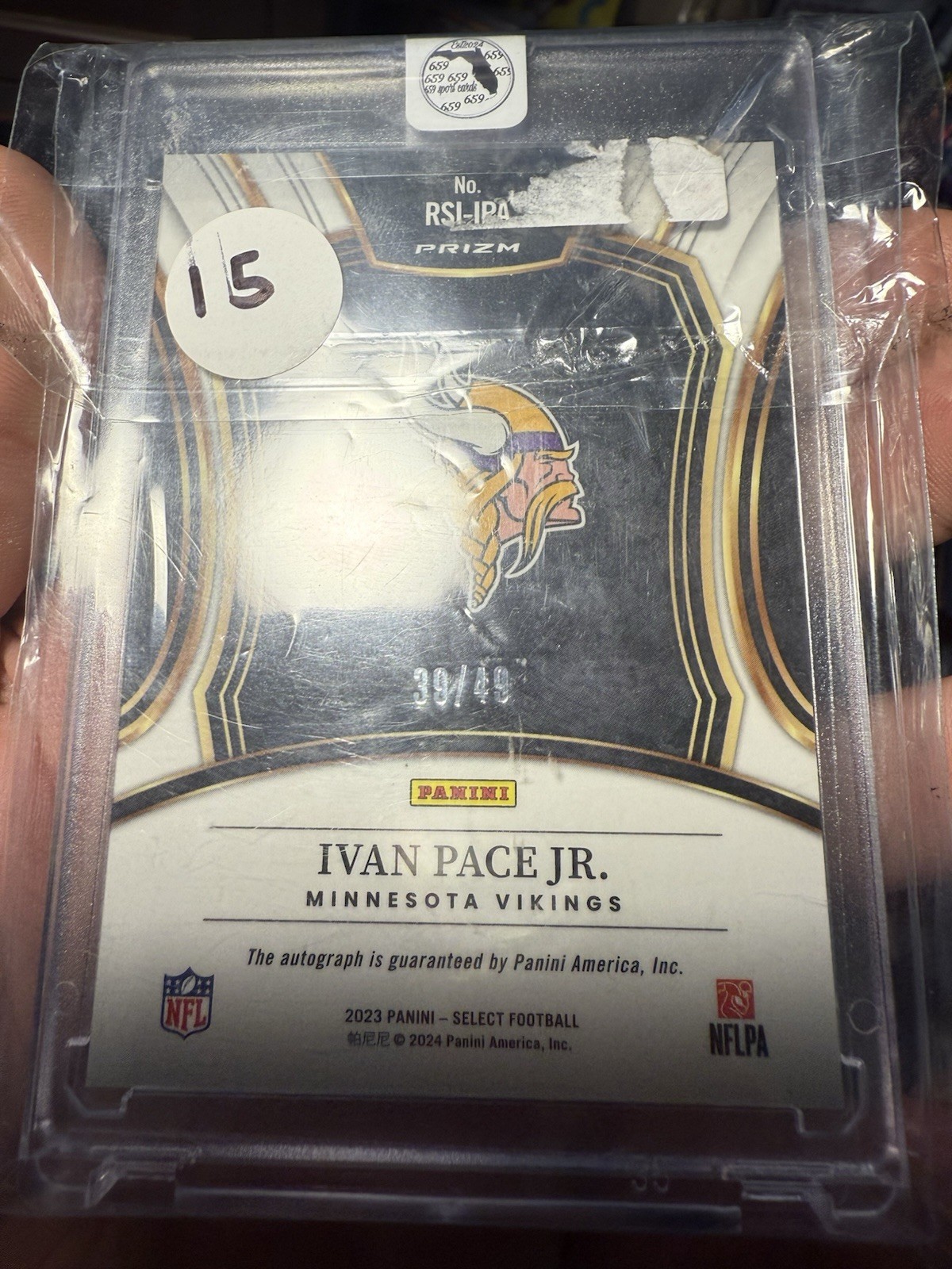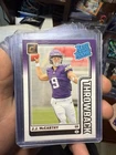 $1 per card plus shipping. The product is a lot of 28 football trading cards featuring players from the Minnesota Vikings, including rookie cards of Ivan Pace, J.J. McCarthy, and more. Manufactured by Panini, these standard-sized cards are made of card stock and are original prints from the 2024 season. The cards are all licensed by the National Football League (NFL) and are not considered vintage. Perfect for collectors looking to add some promising rookies to their collection, this lot offers a variety of cards from the NFL team of the Minnesota Vikings.