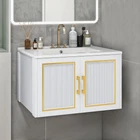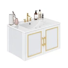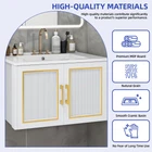 30" Floating Wall Mounted Bathroom Vanity Storage Cabinet Sink Combo Countertop Product Description NOTE: Professional Installation is Highly Recommended. Description: 1. Color: White + Gold Accents 2. Cabinet Material: Particle Board, Soiid Wood, Metal 3. Sink Material: Ceramic 4. Sink Type: Basin Sink 5. Faucet Holes: 3 (Faucet not included) 6. Mounting Type: Wall-Mounted 7. Room Type: Bathroom 8. Special Design: Floating Effect, Luxurious Design, Soft-Closing Doors Features: Efficient Storage Design - This wall-mounted bathroom vanity features two spacious drawers with smooth-glide tracks and four open compartments, offering ample space to keep your essentials neatly organized and easily accessible. Contemporary Elegance - Designed with discreet gold-tone handles, this vanity blends style and functionality. Its sophisticated black and gold color scheme adds a luxurious touch while maintaining a sleek and practical aesthetic. Maximum Quality Ceramic Sink - The rectangular ceramic countertop includes a generously sized basin for superior convenience. Pre-drilled with three faucet holes, it also comes with a drain and drain pipe for lasting durability (faucet not included). Sturdy Construction & Easy Installation - Made from high-density engineered wood, this vanity ensures exceptional strength and longevity. It includes all necessary components for quick assembly, with clear instructions and 24/7 customer support available for assistance. Dimensions: 1. Product Dimensions: 30.0"L x 18.3"W x 17.7"H 2. Item Weight: 54 lbs 3. Weight Capacity: 150 lbs Package Included: 1. 1 x Bathroom Vanity Cabinet 2. 1 x Ceramic Basin 3. 1 x Installation manual Installation Tip : For safety, secure the vanity to the wall using screws at the stud location. Shipping 1. Normally the item will be dispatched within 1 business day if payment is cleared before 12pm PST. 2. Please verify the correct shipping address in your PayPal account before making the payment. We only dispatch the item to the address that is sent to us at the time of checkout. 3. We don't ship to Hawaii, Alaska, Puerto Rico, APO/FPO/PO Boxes. 4. We don't provide local pick-up service. 5. Normally we will use USPS, UPS, FedEx & LTL to dispatch items. Payment 1. We accept PayPal and credit card. 2. We will ship to the confirmed Paypal shipping address that is provided with the payment only. Return 1. 30 days Money Back Guarantee. 2. Please contact our customer service to receive a RMA form first if want to return the item. 3. All returned items MUST in new condition with the original package. Contact If has any problem, please contact us by sending an ebay message. Our customer service will resolve the problem as soon as possible. On Jun 9, 2024 at 23:22:52 PDT, seller added the following information: On Jul 16, 2024 at 10:41:16 PDT, seller added the following information: On Nov 28, 2024 at 06:50:49 PST, seller added the following information: On Dec 2, 2024 at 02:33:30 PST, seller added the following information: On Dec 19, 2024 at 21:10:59 PST, seller added the following information: On Dec 23, 2024 at 02:00:02 PST, seller added the following information: On Feb 4, 2025 at 00:21:36 PST, seller added the following information: On Feb 4, 2025 at 20:03:31 PST, seller added the following information: On Feb 18, 2025 at 02:16:14 PST, seller added the following information: