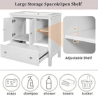 Features : 1.Demonstrate beauty and grace with the 30" white bathroom vanity base to your room. 2.The vanity's frame is crafted out of solid pine wood and features painted finish, with raised pattern design, feet, and zinc alloy hardware for an added element of beauty and grace. 3.Fully finished inside and out ensures that the vanity is water and moisture resistant. 4.The storage cabinet with two door and drawers allows big space to store your essentials. Specifications: Color :White Material :Solid Pine Wood & Board Shape :Rectangular Style :Modern Finish :White Painted Finish Mounting Type :Freestanding Features :Water & Moisture Resistant Number of Sinks Accommodated :1 Sink Type Compatibility :Undermount; Drop-In Sink Location :Center Doors Included :Yes Drawers Included :Yes Hardware Included :Yes Leg Design Feet Assembly :Assembly Required Product Size :30.00"L x 18.03"W x 32.13"H Package Size :33.36"L x 20.49"W x 9.33"H Gross Weight :54.23lbs Net Weight :48.51lbs Package Includes: 1x 30" Bathroom Vanity Base Only Demonstrate beauty and grace with the 30" white bathroom vanity base to your room. The vanity's frame is crafted out of solid pine wood and features painted finish, with raised pattern design, feet, and zinc alloy hardware for an added element of beauty and grace. Fully finished inside and out ensures that the vanity is water and moisture resistant. The storage cabinet with two door and drawers allows big space to store your essentials.