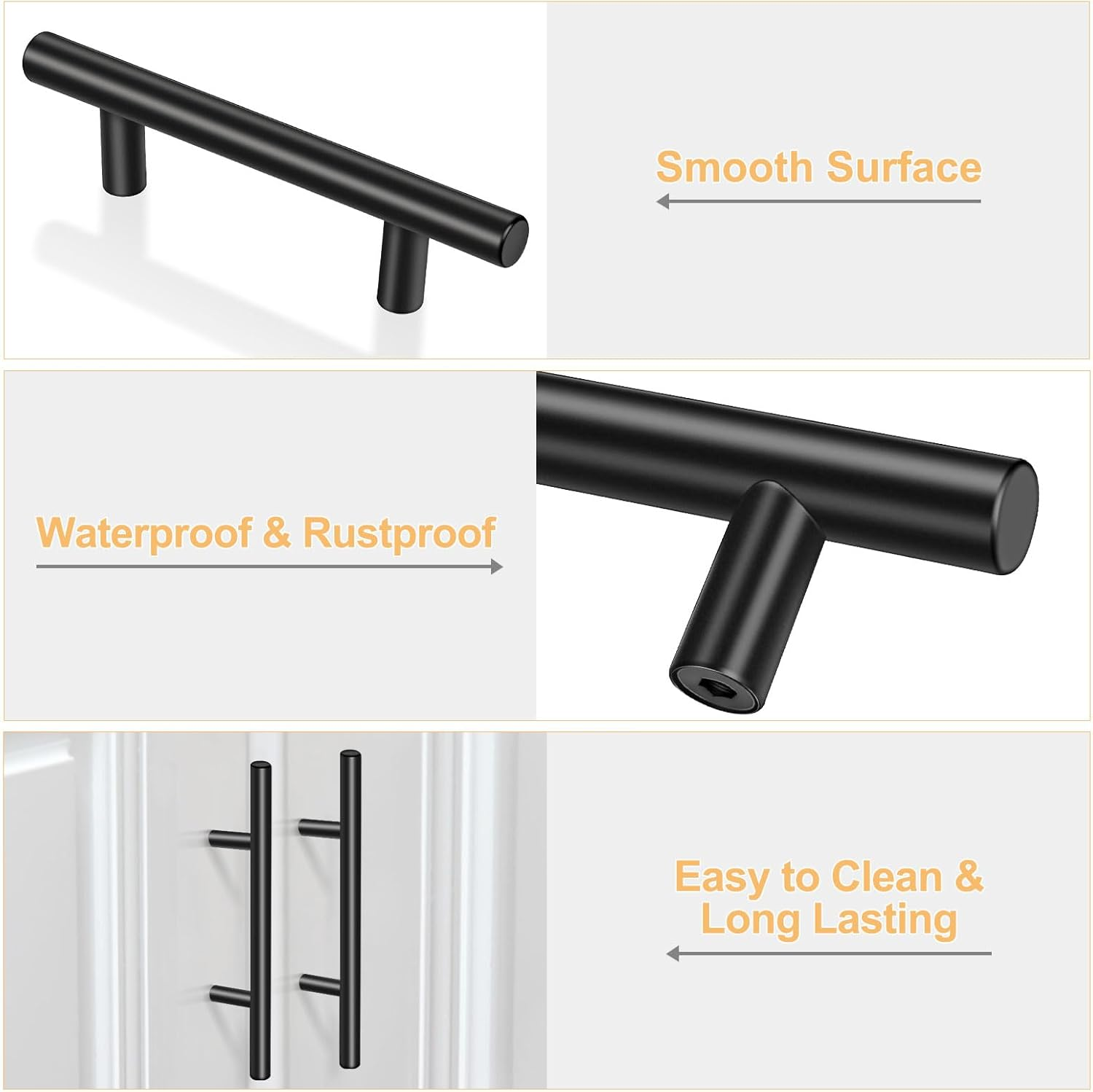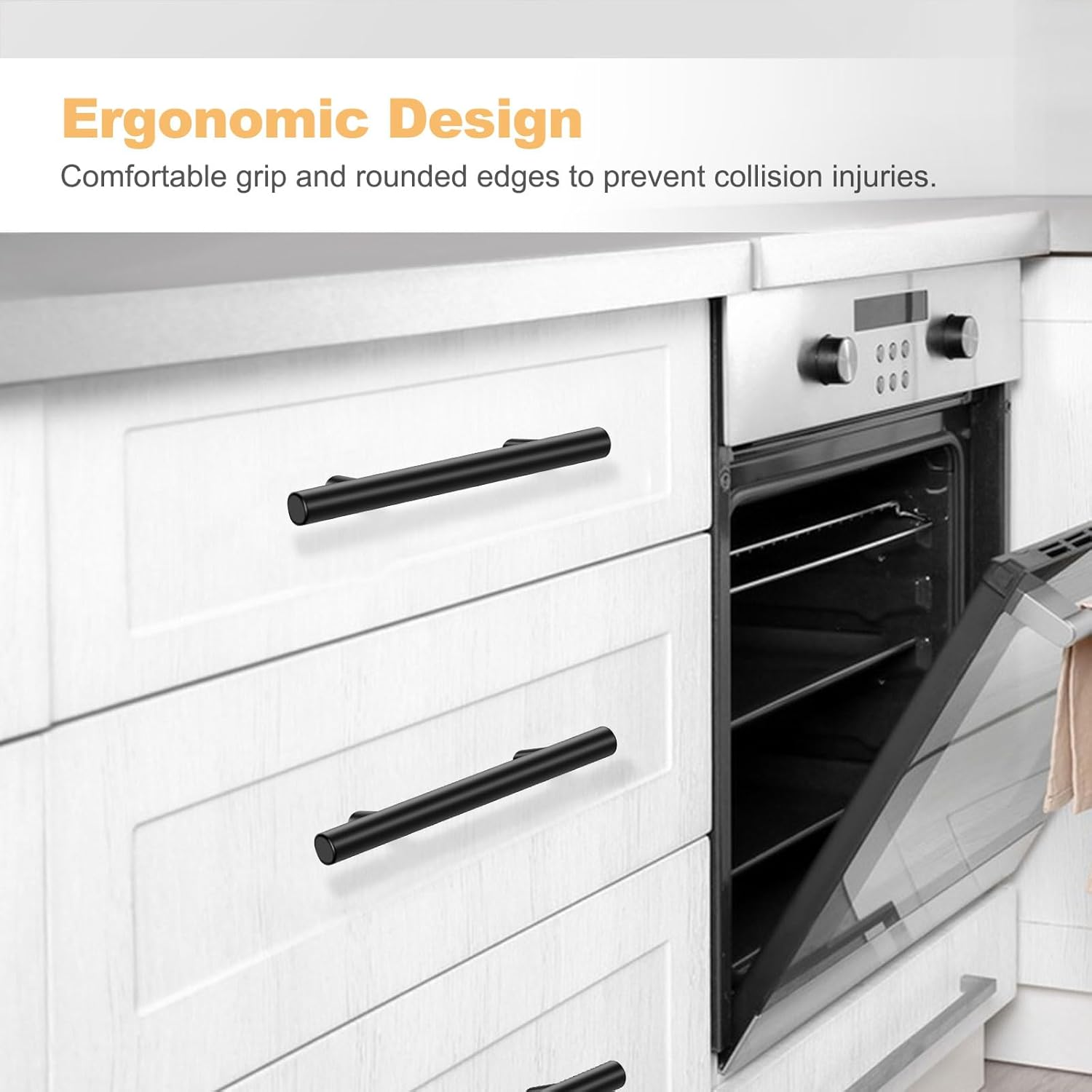 【MATTE BLACK CABINET PULLS】Our cabinet pulls match with various decoration style. Matte black finish adds a touch of modern elegance to your cabinets. The rounded edge design makes you experience a comfortable grip every time you open the cabinet. 【HIGH QUALITY CABINET HARDWARE】Onateel cabinet handles are made of stainless steel, durable and reliable, which can withstand daily and heavy use. The hardware are individually packaged, effectively preventing scratches during transportation. 【CABINET HANDLES EASY TO INSTALL】The cabinet handles come with mounting screws of TWO sizes, conveniently fits a variety of cabinet thicknesses. All you need is just a screwdriver, then gives your cabinet an instant upgrade, totally elevates your kitchen's aesthetics with minimal effort. 【EXCEPTIONAL VALUED CABINET KNOBS】Our premium cabinet knobs are at an unbeatable price, complement any kitchen décor, from classic to contemporary. Order now and elevate your kitchen's style and functionality without breaking the bank! 【DIMENSIONS of ONATEEL PULLS】Overall Length: 5 inch (127 mm); Hole Centers: 3 inch (76 mm); Screws: 1 inch (25 mm) and 1.57 inch (45 mm), two of each size. Product Description ONATEEL EURO ROUND CABINET PULLS The video showcases the product in use. The video guides you through product setup. The video compares multiple products. The video shows the product being unpacked. 1 Kitchen Cupboards 2 Stylish Cabinets 3 Bathroom Drawers 4 Bedroom Cabinets Onateel Drawer Pulls Add to Cart Add to Cart Add to Cart Add to Cart Customer Reviews 4.6 out of 5 stars 381 4.6 out of 5 stars 381 4.8 out of 5 stars 331 4.8 out of 5 stars 331 Price $16.99 $ 16 . 99 $17.99 $ 17 . 99 $23.09 $ 23 . 09 $31.99 $ 31 . 99 Overall Length 5 inch 5 inch 5 inch 6 inch Hole Centers 3 inch 3 inch 3 inch 3.75 inch Finish Type Matte Black Brushed Nickel Matte Black Matte Black Material Stainless Steel Stainless Steel Stainless Steel Stainless Steel Shape Round Round Square Square