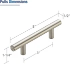 Size Matters: Hole centers: 3 inches (76mm), Overall length: 5 inches (127mm), Diameter: 1/2 inch (12mm), Projection: 1-1/4 inch (32mm) Built to Last: These cabinet door knobs are crafted with zinc alloy and finished with a brushed nickel coating, offering exceptional resistance to rust and corrosion, ensuring durability and longevity Easy Installation: Our matte black drawer handles come with included screws in two sizes (1" and 1-3/4") and M8-32 machine screw metric size. They fit most cabinets and are DIY-friendly Customer Support: If you have any questions or issues, reach out to us. We're committed to your satisfaction and will promptly address your concerns Simple and Functional Design: Effortlessly complements a wide range of kitchen cabinets doors, and drawers. Experience a smooth and clear grip for effortless access Product Description