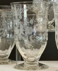 Beautiful 30-piece matching etched crystal stemware set by Tiffin Glass Co., featuring the elegant Flanders floral etch with delicate wheel-cut flowers and the signature ribbed stems. This complete set includes: • 10 Water Goblets – 8” tall • 10 Sherbet / Champagne Coupes • 10 Footed Tumblers / Juice Glasses A rare opportunity to own a full matching mid-century crystal service perfect for dinner parties, holiday tables, weddings, and collectors of elegant American glass. All pieces are in excellent vintage condition.