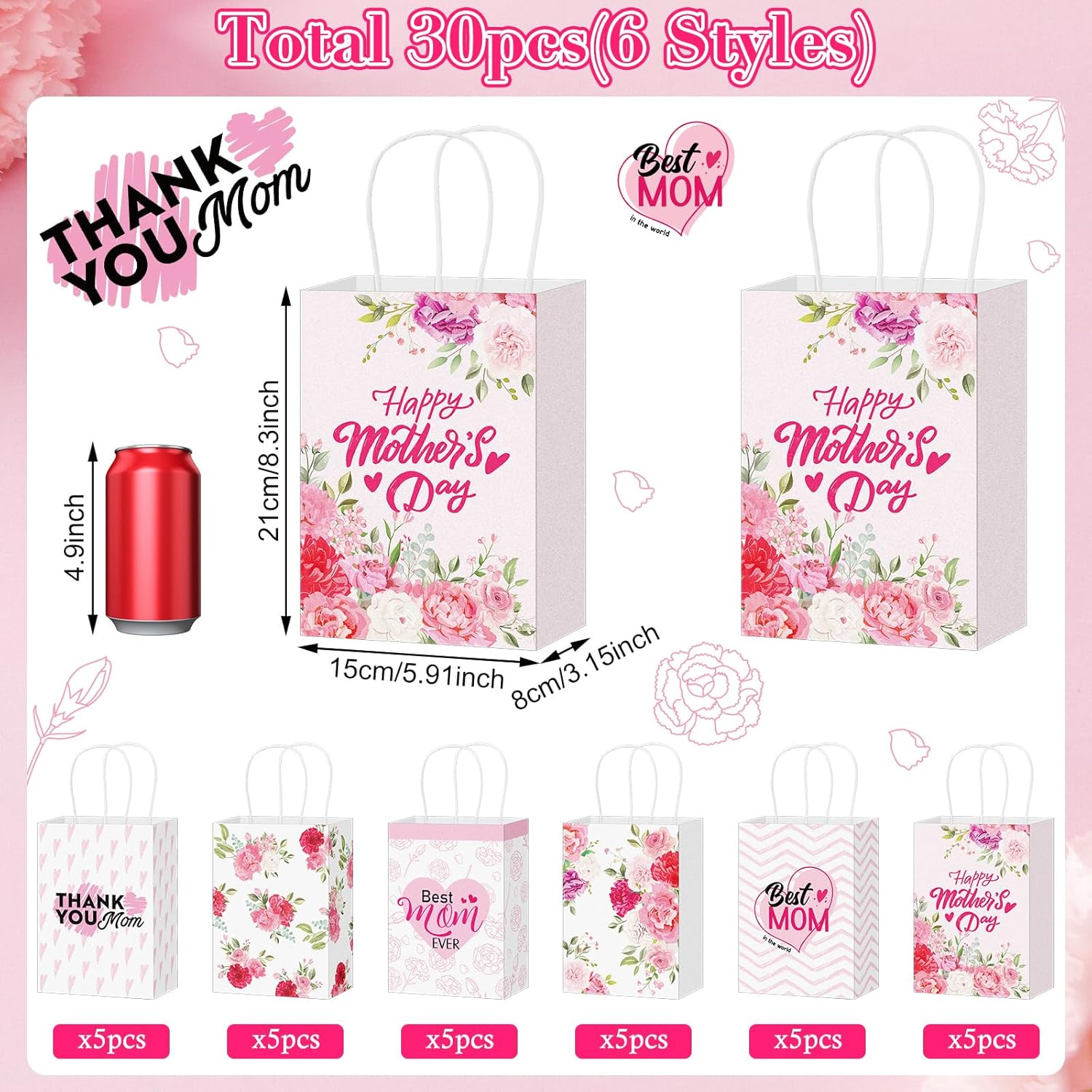 Package Content: there are a total of 30 pieces of Mother's Day season gift paper bags, 6 styles, 5 pieces for each style; The sufficient quantity and styles can nicely meet your needs of the Mother's Day season party Quality Material: these gift bags are made of quality paper, sturdy and , not easy to break, and they are designed with clear printings, no fading, and equipped with handles, easy to use Suitable Size: our bags for gifts are with appropriate size, their size is about 15 x 8 x 21 cm/ 5.9 x 3.15 x 8.3 inches, you can use them to hold gifts, snacks, candies, and many other things Multi Style: these Mother's Day gift bags with handles are designed in 6 different kinds of styles, and they are all with the Mother's Day theme; There are some pink carnation and some words printed on them, such as [Happy Mother's Day], [Thank you Mom] and many other warm letters Wide Application: these Mother's Day party bags are suitable gift bags for Mother's Day parties, such as Mother's Day party, Spring party, and so on; You can use them to take your Mother's Day gift and send to your mom Features: Nice decorations: These Mother's Day gift bags can be applied as decorations in the Mother's Day parties, the warm and sweet designs can bring more Mother's Day atmosphere to these parties, and people can use these bags to take things. DIY crafts: These Mother's Day gift bags with handles are made of paper, so you can print your own ideas and the words you want to say on them, and then send to your friends, they will like the gift and feel your love. Specifications: Material: paper Color: as the picture Size: 15 x 8 x 21 cm/ 5.9 x 3.15 x 8.3 inches Package includes: 30 x Mother's Day paper bags Notes: Manual measurement, please allow slight errors on size. The color may exist a slight difference due to different screen displays.