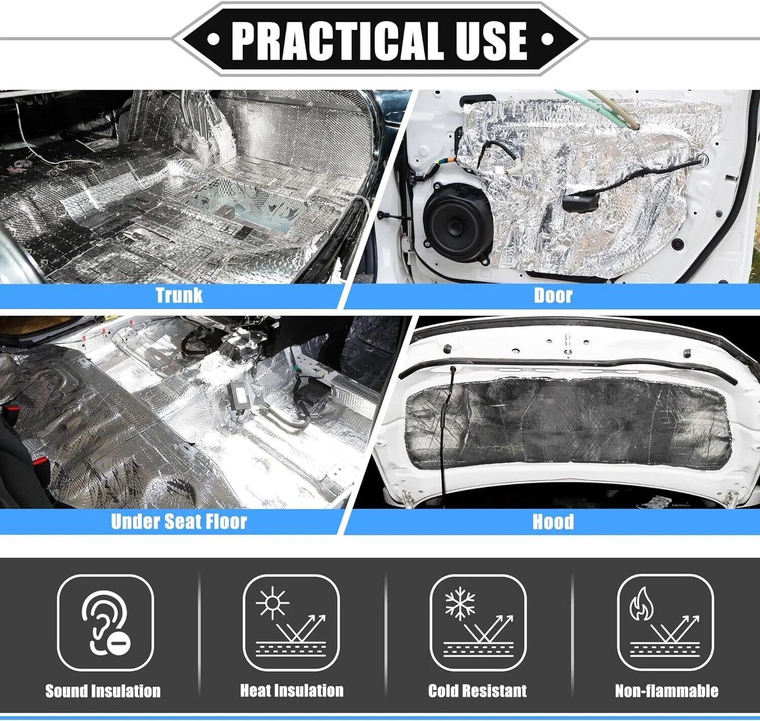 Specification: Material : Aluminum & Rubber Foam Color: Silver Recommended Install Temperature: -10°C ~ +60°C Resistance Temperature Range: -40°C ~ +300°C Waterproof & Fire Resistant: Yes Size ( L x W ): 16''x10'' (40cm*25cm) Thickness: 7mm=276mil Feature: Breezesew Best choice of motor parts 30Sheets Sound Deadener Heat Insulation Self-adhesive Mat For Car Hood Engine US Specification: Material : Aluminum & Rubber Foam Color: Silver Recommended Install Temperature: -10°C ~ +60°C Resistance Temperature Range: -40°C ~ +300°C Waterproof & Fire Resistant: Yes Size ( L x W ): 16''x10'' (40cm*25cm) Thickness: 7mm=276mil Feature: Flexible, crush resistant, non-toxic & fragrance free. Reduces unwanted sound and most vibrations. Keeps your car&home interior cooler in the summer and warmer in the winter. Can make the heat of the engine evenly distributed to avoid overheating the lid. Effectively blocks 97% of radiant heat transfer. Note : (self-adhesive glue have some smell), creates a mold and mildew resistant vapor barrier. The benefits of sound insulation Reduce road noise If you often drive on uneven roads or on noisy highways, sound insulation can bring you more comfort. It will reduce the noise of roads and other drivers. This will make your driving smoother and have the added benefit of better media listening. Enhance the music Use sound insulation to make your radio clearer. You will no longer have to turn it up because of traffic noise. Not only is it good for music, but audio books and telephones will sound better, too. Improve privacy If you don't want other people on the road to hear what you're listening to, the sound insulation prevents the noise from escaping. Sound insulation will help you. Warm in winter and cool in summer This car insulation will help reduce your interior temperature in the summer, keep you warm in the winter, reduce engine/tunnel/console. Protect car paint In summer, the temperature is too high, the engine runs at high speed and accelerates for a long time, and generates heat, which can easily cause the aging and fading of the car paint; the heat insulation pad can protect it. Increase the life of the car In summer, due to high temperature and long-term driving, it is easy to cause the cabin to heat up and cause a fire, which may seriously damage your car. Using heat insulation pads can extend the life of the car. Fitment: for Exterior bulkhead, firewall, hood, engine compartment, engine bays. for Boot, wheel arch, body panels, load floor, under seat, floor, interior bulkhead. Also ideal for under floor applications as it has great load resistance properties. Installation: Step 1 : Remove the door panels Step 2 : Install the screws back in original place, it will easy be found when you mount, avoiding holes be covered Step 3 : With roller tools will make insulation materials and sheet metal firm fit, and play best adhesive, damping performance Step 4 : According to the effect you want choose construction program, only single Soundproof/Damping Plate or single Heat and Noise Insulation Cotton or Both them. Step 5 : You can also use on car roof floors, hood , firewall, chassis, trunk room, trunk lid and so on.. Do not cover the chassis wiring or air holes. Package Included : 30pcs Sound Deadener Mats Note: Please allow 1-3cm differences due to manual measurement. Due to the difference between different monitors,the picture may not reflect the actual color of the item.Thank you! If you have any questions or concerns, please contact us using the EBAY messaging system.Thanks! Item Specifics Brand Modigt Color Silver&Black Material Aluminum & Rubber Foam Type Car Truck Noise Reduce Dampening Fitment Type Direct Replacement Placement on Vehicle Cargo/Trunk/Bonnet/Dashboard/Under Seat/Doors Easy Installation All Curves and Corners Without The Need For Heat Manufacturer Part Number Car Heat / Sound Insulaiton Deadener Superseded Part Number Heat Sound Deadener Insulation Mat Interchange Part Number Deadening Material Insulation Cars & Truck Application 1 Turbo,Front Fender,Rear Fender Application 2 Hood,Firewall,Doors,Floor,Roof Application 3 Ceiling,underneath bonnets,Underfelt Application 4 Trunk Lid,Trunk Room,Engines,Tailgate Application 5 Underlay,Boot,Panel,Chasis Application 6 Automotive,Motorhome,Camper,Restorer Application 7 Classic Car,Race Car,Stock Car,Old Vintage Car,Pickup,SUV,Caravan Application 8 Van,Truck,limousine,Camper,Boat,Motor Homes,School Bus,Low Rider Application 9 Muscle car/Hot rods/Corvettes/Imports/Tuners/Street rods/Rat rods Application 10 Cockpit Floor, Tailgate, Firewall U Type Wall Application 11 For Use in The Application Of Any Sound Deadening Application 12 Car& Home Interior Heat Sound Deadener Insulation Function 1 Protects Paint from Blistering Function 2 Reduce the road/ Engine/ Wind noise Function 3 Dustproof, Waterproof, Anti-moisture Features 1 Noise Reduction, Easy to Cut, Self-Adhesive Features 2 Easy Installation, Waterproofing, Fireproofing Features 3 Protects Paint from Blistering, Anti-moisture Item Length 40cm=16in Item Width 25cm=10in Thickness 7mm = 276mil Size 30×40cm×25cm=3sqm=32.29sqft Manufacturer Warranty 2 Years Items Included 30pcs 40cm*25cm Sound Deadener Universal Fitment Yes Payment 1. It will be much appreciated that you finish your payment asap or it will make UPI (unpaid item case) on your account leading to be suspended or restricted by eBay when those UPI cases carry over to certain amount. 2. Any problems please contact us for more details. Shipping 1. All items will be shipped to buyer's ebay address. 2. All items will be shipped within 24-48 working hours upon receipt of payment, and multiple items will be combined shipping. 3. In most cases, delivery takes around 3-5 business days, it's highly depended on the efficiency of the shpping carrier. If your item doesn't arrive on time, please contact us immediately for further assistance. Please note there is no local pickup service available. Re