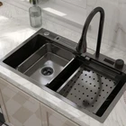 Description This Multifunctional Stainless Steel Sink for Dishwashing is an essential and highly durable kitchen appliance that ofers a blend of functionality, hygiene, and aesthetic appeal. Crafted from premium-grade 304 stainless steel, this sink stands out for its superior qualities that make it a preferred choice for modern households and commercial settings alike. Features **Premium 304 Stainless Steel **: The kitchen sink is made of high quality stainless steel, with super strength and durability. Imitation honeycomb nano-coating is ‘anti-scratch’ and easy to clean, also can withstand high temperature **Multi functional Practical Design**: This nano kitchen sink has a one-of-a-kind design that incorporates a waterfall, which not only makes the sink more beautiful to the eye but also makes it easier for water to flow without splashing and reduces the amount of water that is wasted. The pull-down faucet with three water outlet methods meets different needs. There are double-layered sliding tracks on both sides of the inner wall for sink accessories, allowing for partitioned operations. It not only saves more space but also adds a level of convenience and flexibility to kitchen chores. **Efficient Drainage**: The gently sloping bottom of the built-in kitchen sink prevents water from accumulating in the bowl and draining quickly without clogging. **Noise Reduction Features**: The exterior of the kitchen sink is equipped with thicker, softer rubber shock pads and an anti-condensation coating that provides additional sound insulation and protects the cabinets from moisture and warping. **Package Details**: Kitchen Sink*1, Pull-out Faucet*1, Drain Basket*1, Basin*1, Tool Carrier*1, Water Leakage*1, Angle Valve+Gravity ball*1, Draining Kit*1 (Includes a complete set of accessories). Specification Material: Stainless Steel Colour: Black Shape :Rectangle Exterior Dimensions: 30" x 18" x 8.46" Internal Dimensions: 27.55" x 13.97" x 8.26" Net Weight: 22 lbs Package Content 1 x Kitchen Sink Workstation (Includes complete set of accessories) 【Customer Service】 Please feel free to contact us if you have any problem, we will help you resolve any issues in the shopping process. On Sep 28, 2024 at 04:53:46 PDT, seller added the following information: On Oct 8, 2024 at 03:48:26 PDT, seller added the following information: On Oct 15, 2024 at 23:43:42 PDT, seller added the following information: