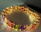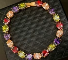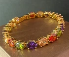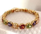 30 CWT Multicolor 4-Prong 6*8 Oval Gemstone Tennis Bracelet 7.5 inch 18k Gold Plated Finish Statement Luxurious Tennis Bracelet We carry the Same Bracelet in Smaller Size 6.5” and in 18k Rose Gold Finish at Our eBay Store Bracelet Design/ Details • Bracelet Type: Tennis Bracelet • Bracelet Size/Length: Bracelet length is 7.5 inch (19cm) • Bracelet Dimensions: Bracelet circumference is 7.5 inch (19cm) • Bracelet Width: 1/4 inch (6mm) • Bracelet Clasp/ Closure: Fold over box clasp • Bracelet Extension Clasp: No Gemstone Details • Gemstone Type: Multicolor Gemstone; Garnet, Citrine, Peridot, Amethyst • Gemstone Count: 5 Garnet, 5 Citrine, 5 Peridot, 5 Amethyst • Gemstone Total Count: 20 Gemstones • Gemstone Color: Multi-color • Gemstone Shape: Oval. All gemstones; garnet, citrine, peridot, amethyst is oval shape/cut • Gemstone Composition: Natural • Gemstone Treatment: Heating • Gemstone Setting: 4-Prong • Gemstone Size : 6*8 mm • Carat Weight per stone: Each gemstone is 1.5 carat • Gemstone Carat Total Weight (cwt): 30 carat total weight Metal Details • Metal: 18K Gold plated copper • Base Metal: Semi-precious metals copper and tin • Metal Color: Gold • Metal Plating: 5 Layers of 18k gold over base metal • Finishing Technique: Polished metal • Metal Stamp: No Thank for Shopping with us! Feel Beautiful Every day!