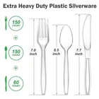 Dealusy Extra Heavy Duty Clear Plastic Silverware 【Premium Material】: Dealusy clear plastic silverware heavy duty are made of food grade polystyrene, total BPA free and toxin free for your healthy meals. 【Extra Heavy Duty】: Our heavy duty plastic utensils set, plastic cutlery set disposable with edge thickened design won’t bend easily. 【Heat Resistant】: These disposable plastic silverware set can withstand a high temperature, ideal for hot and cold food. 【300 Value Pack】: This disposable cutlery bulk contains 100 forks, 100 spoons & 100 knives, perfect for your everyday use or serving a wedding, panic, party etc. 【Disposable or Resuse】: These strudy and durable plasitc silverware are suitable for disposable use, or you can wash to re